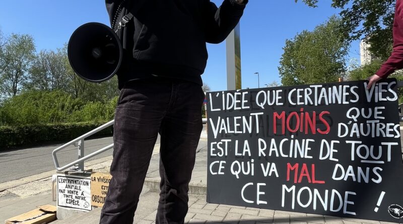 Le mardi 16 septembre 2025, les activistes de S.E.A. étaient présents devant l’université de Liège pour dénoncer les tests cruels