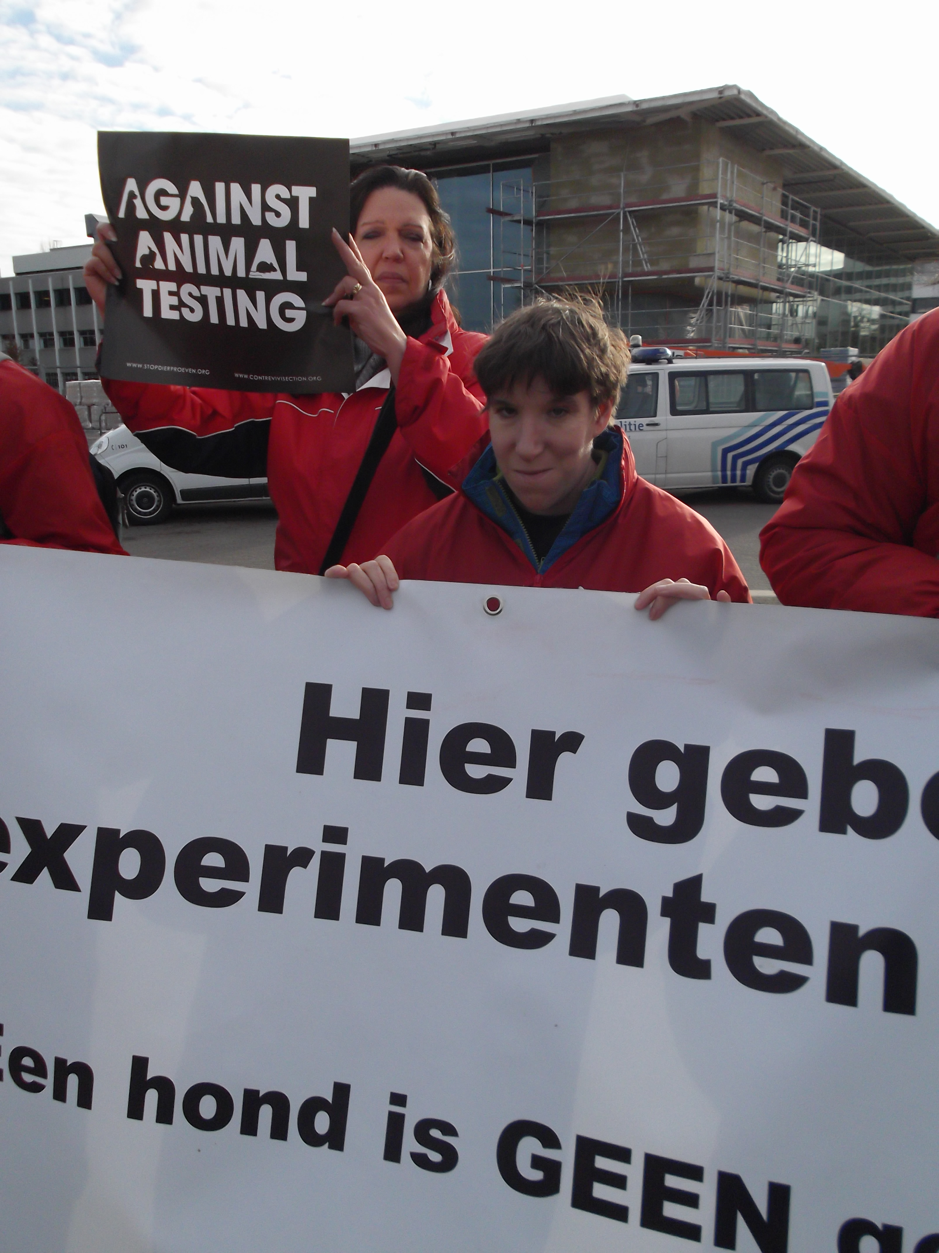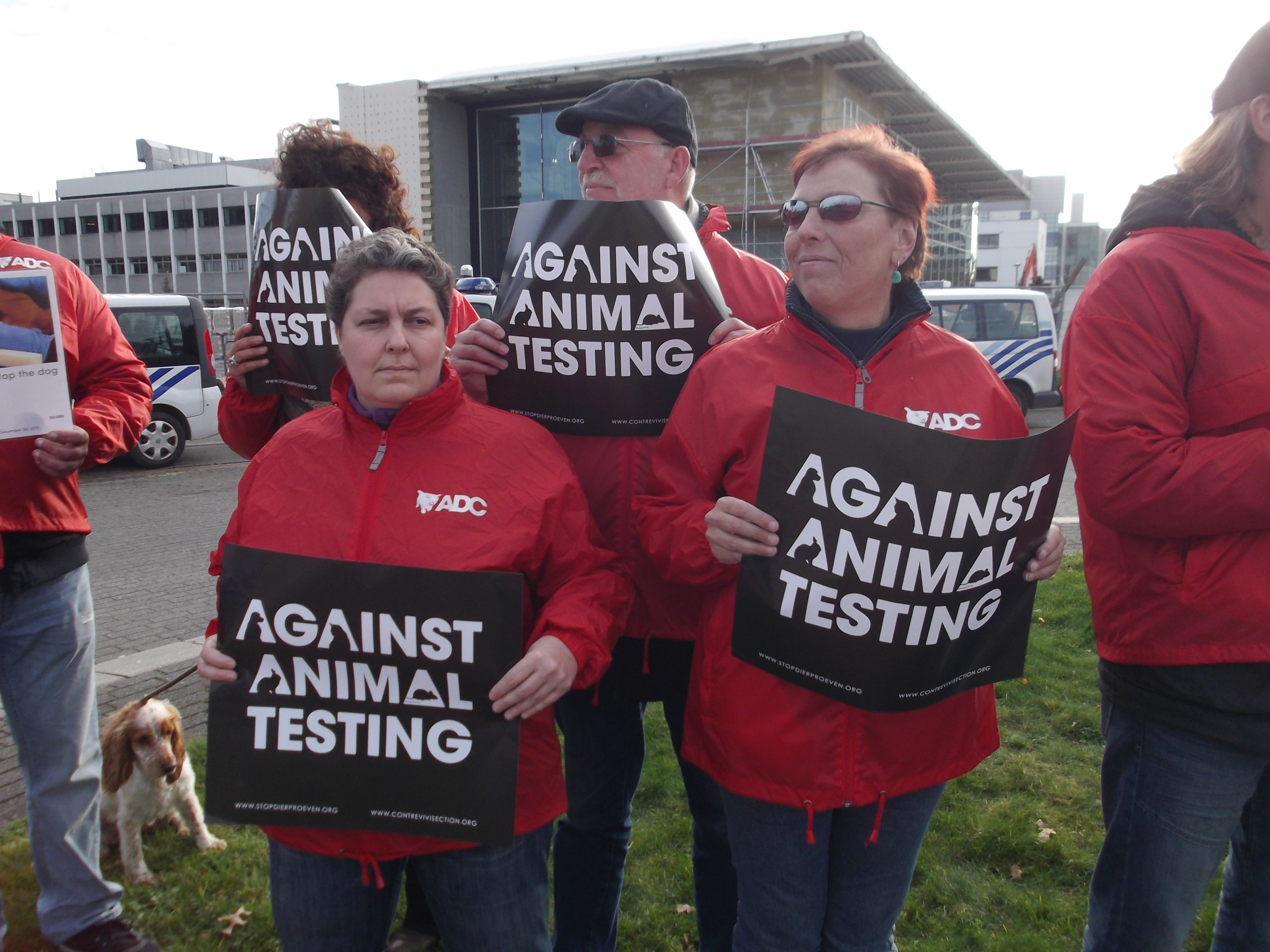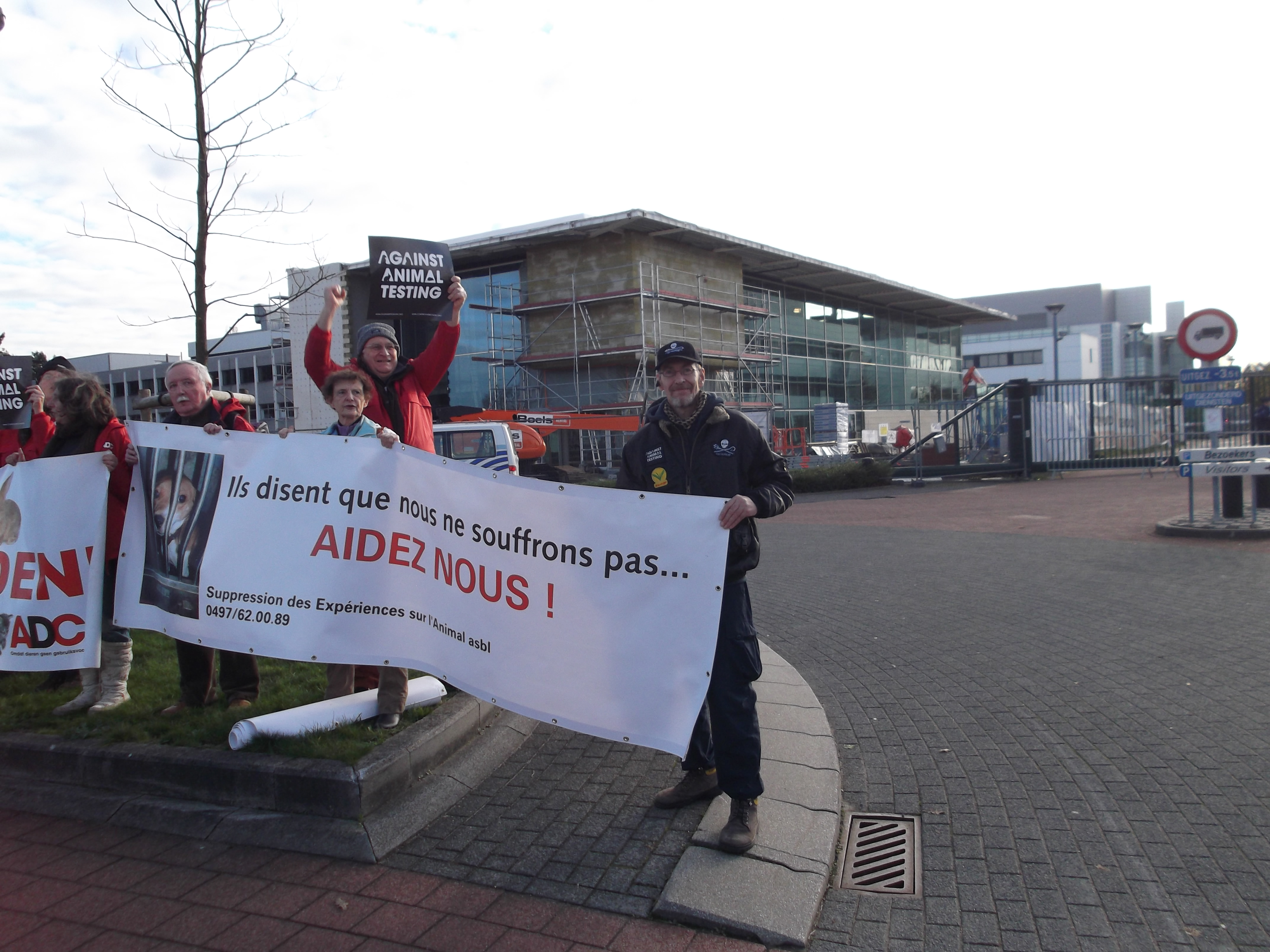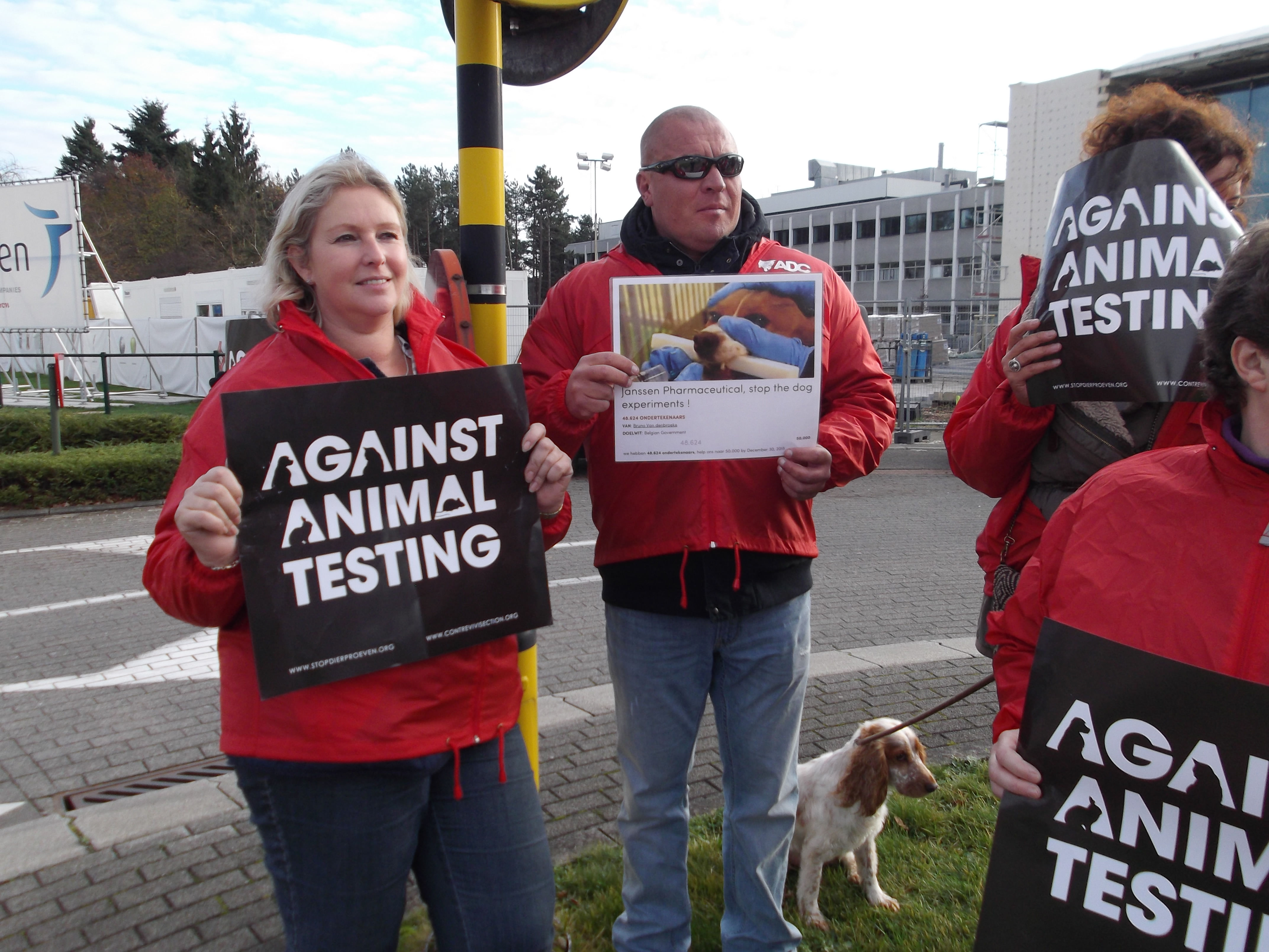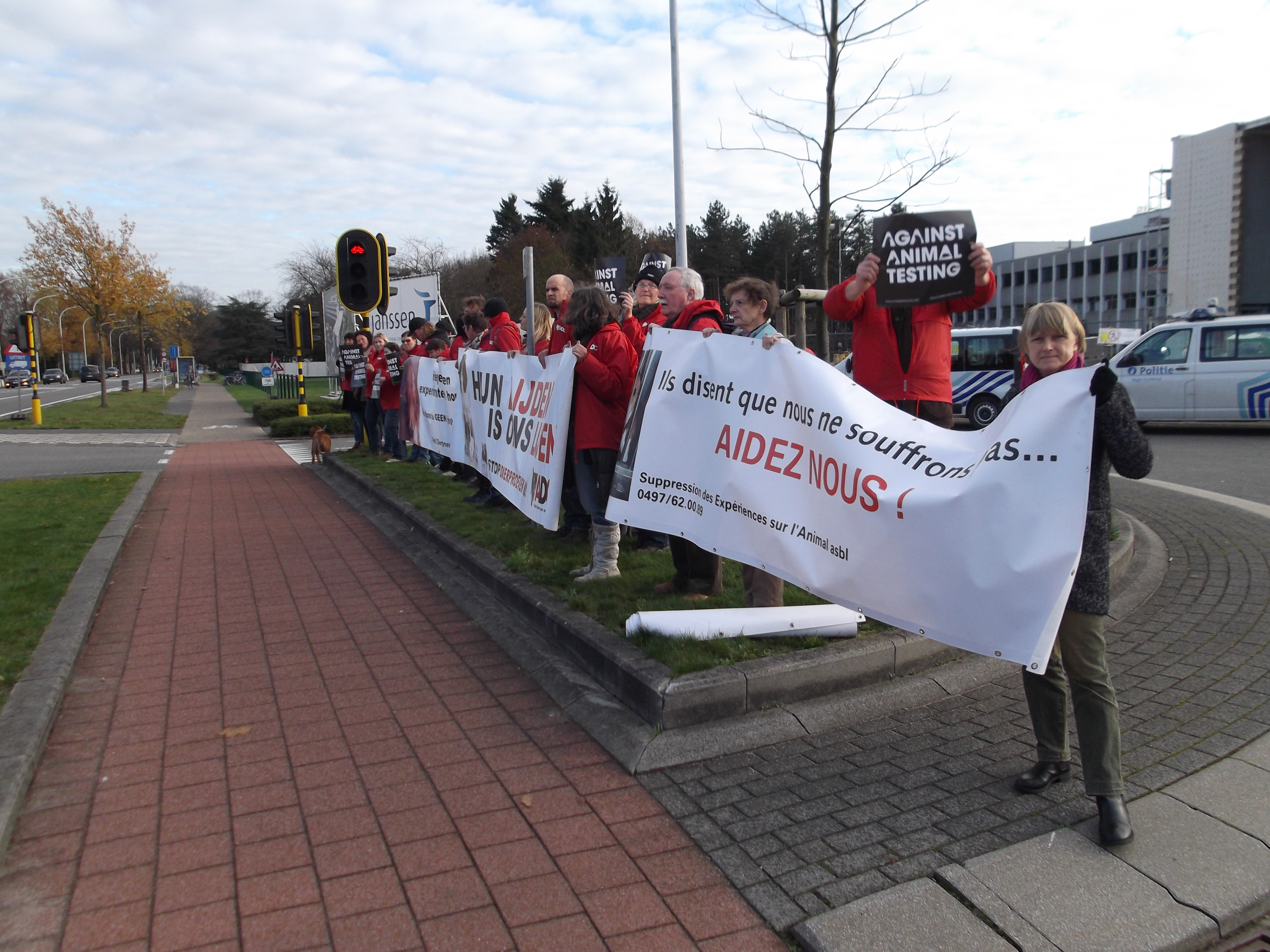 Manifestation organisée par la Coalition Anti Vivisection, à laquelle S.E.A. a participé, ce 2 décembre 2015, devant l’entreprise Janssen Pharma à Beerse.