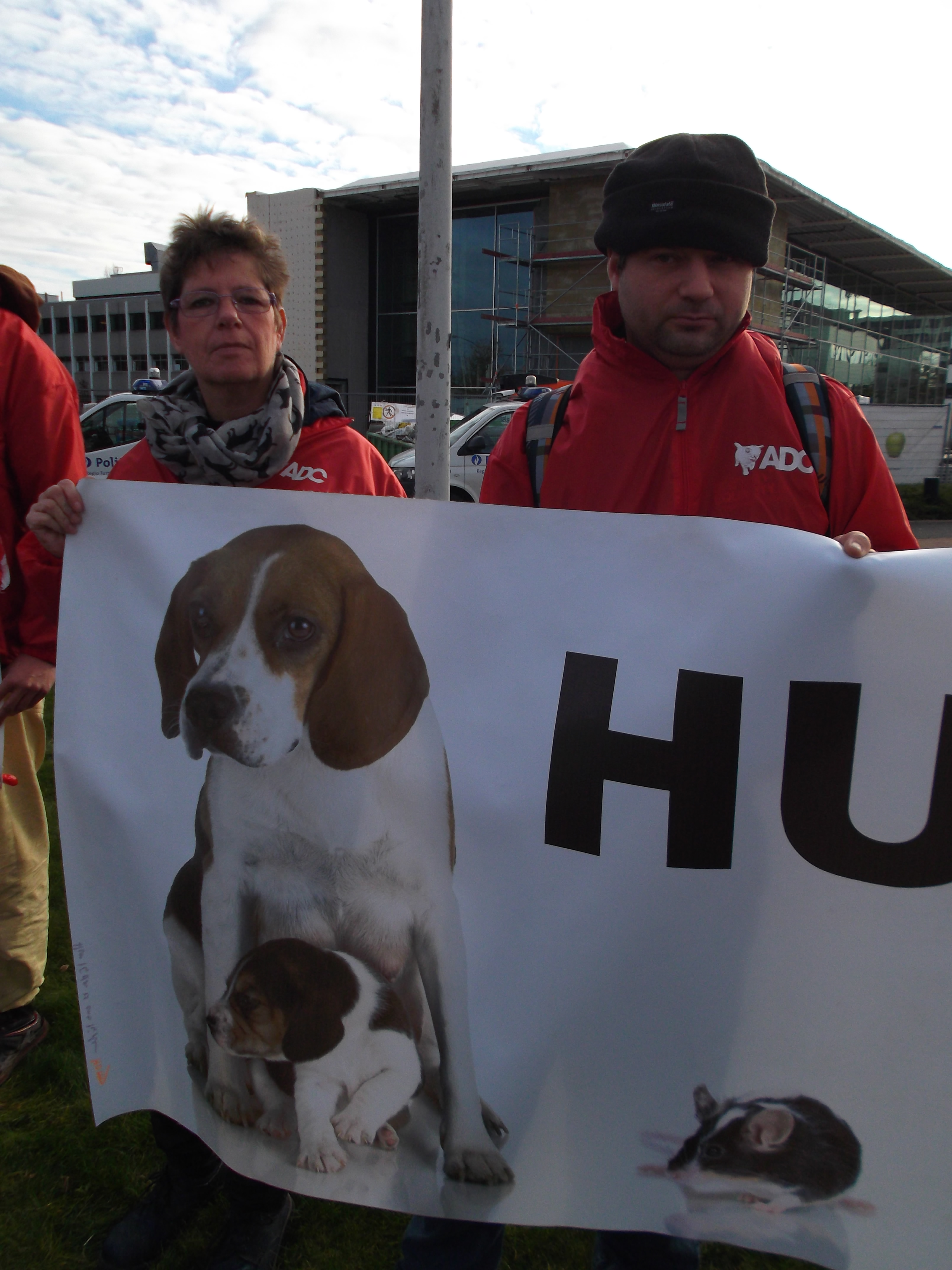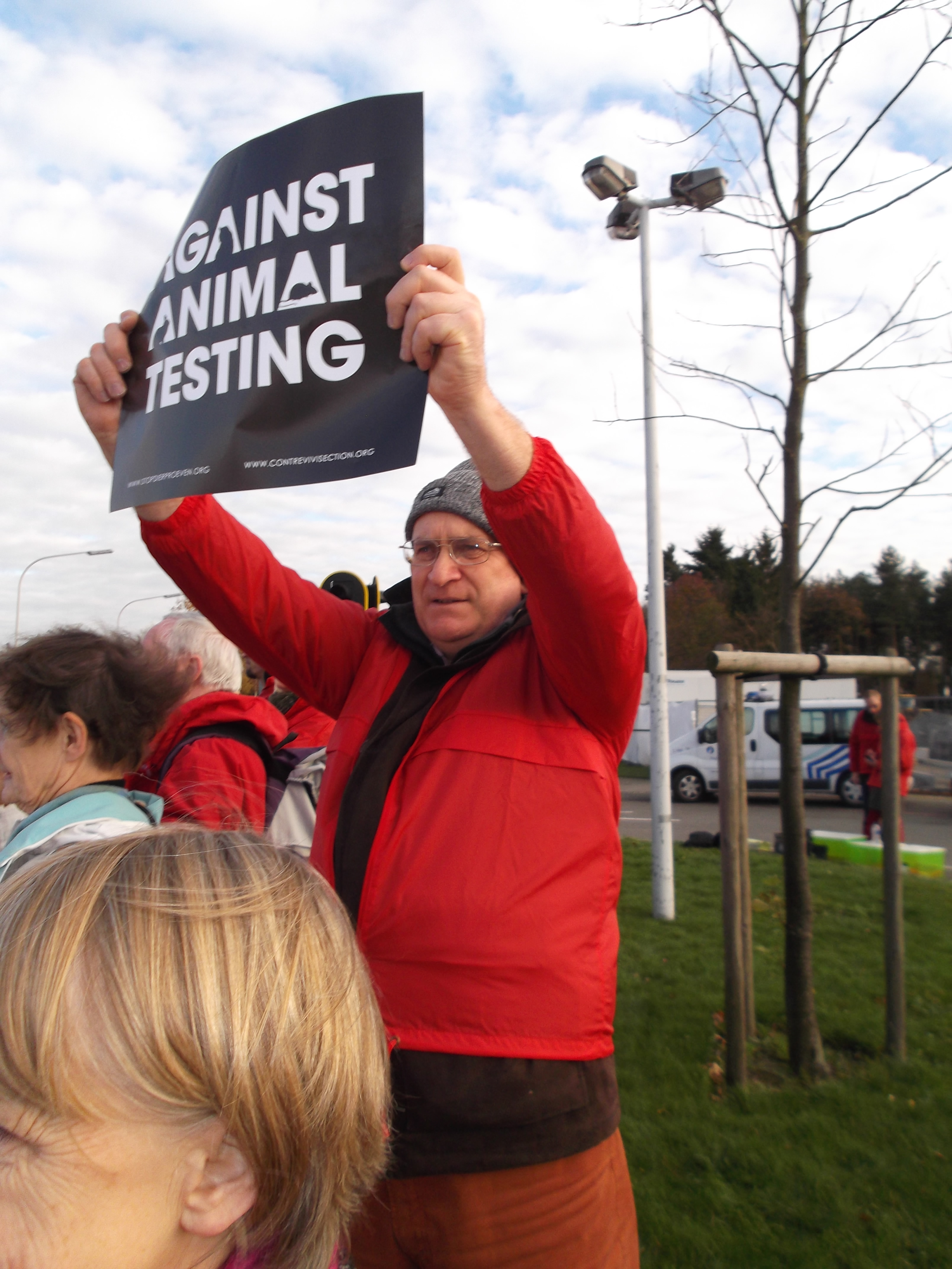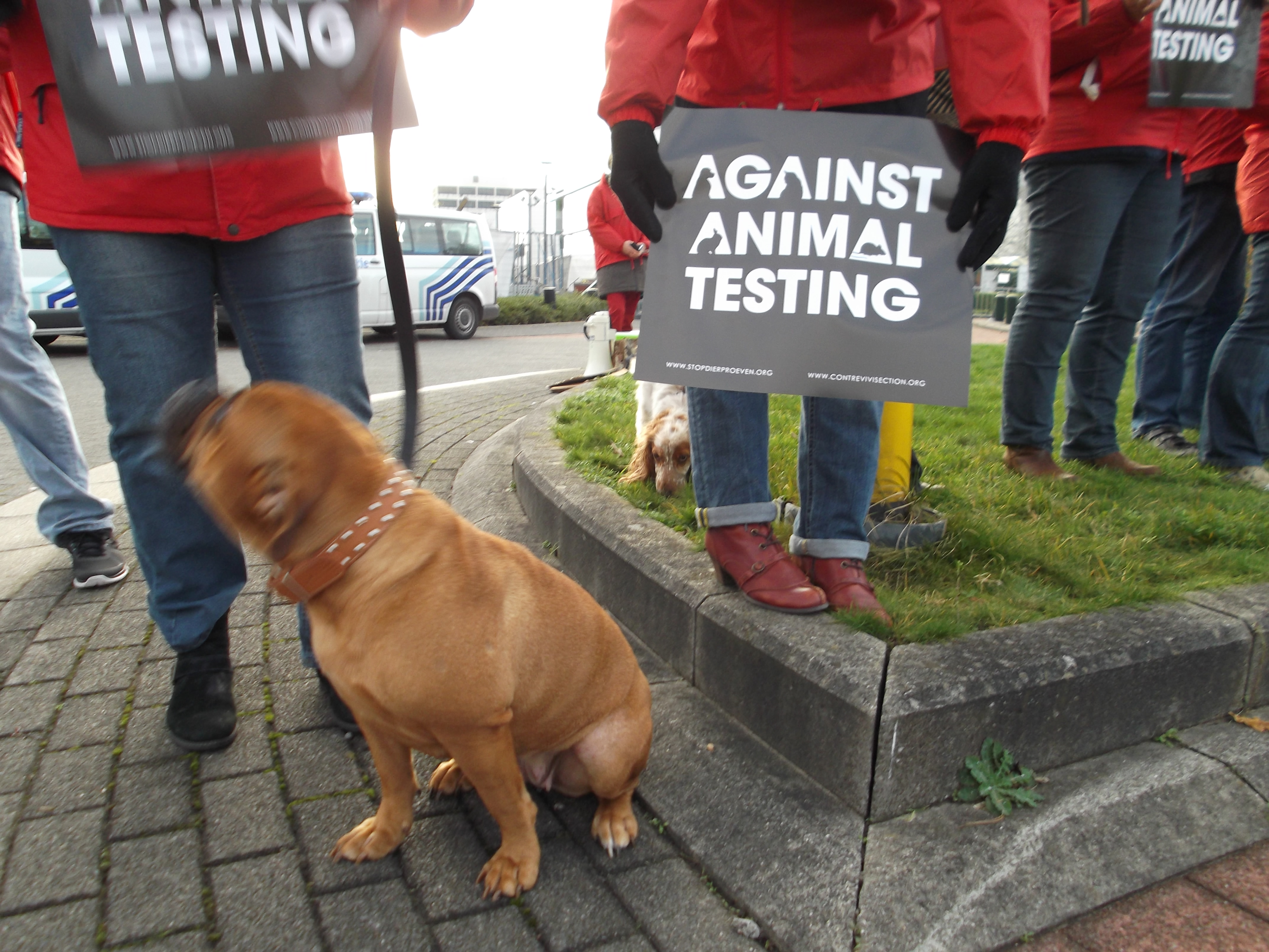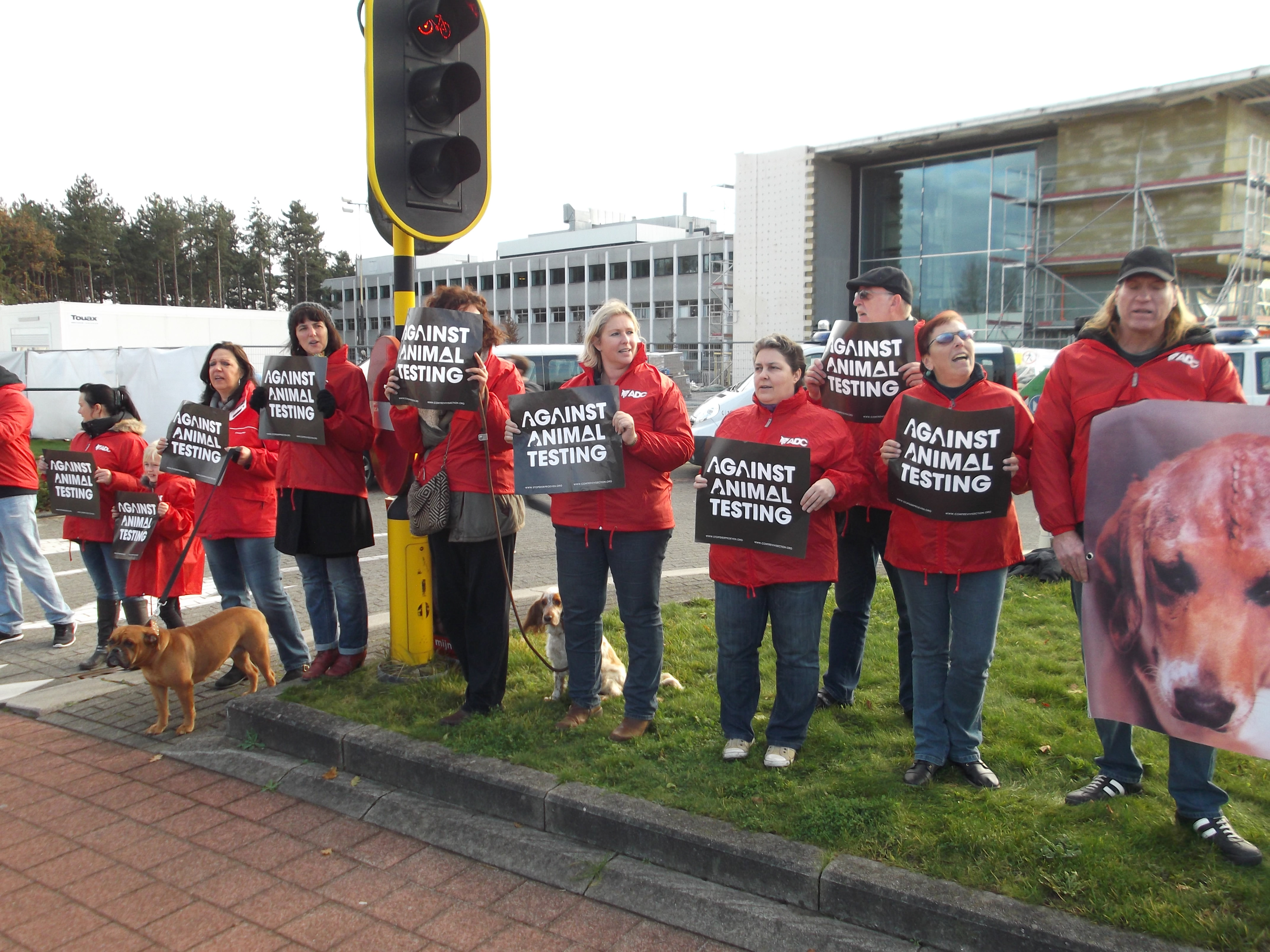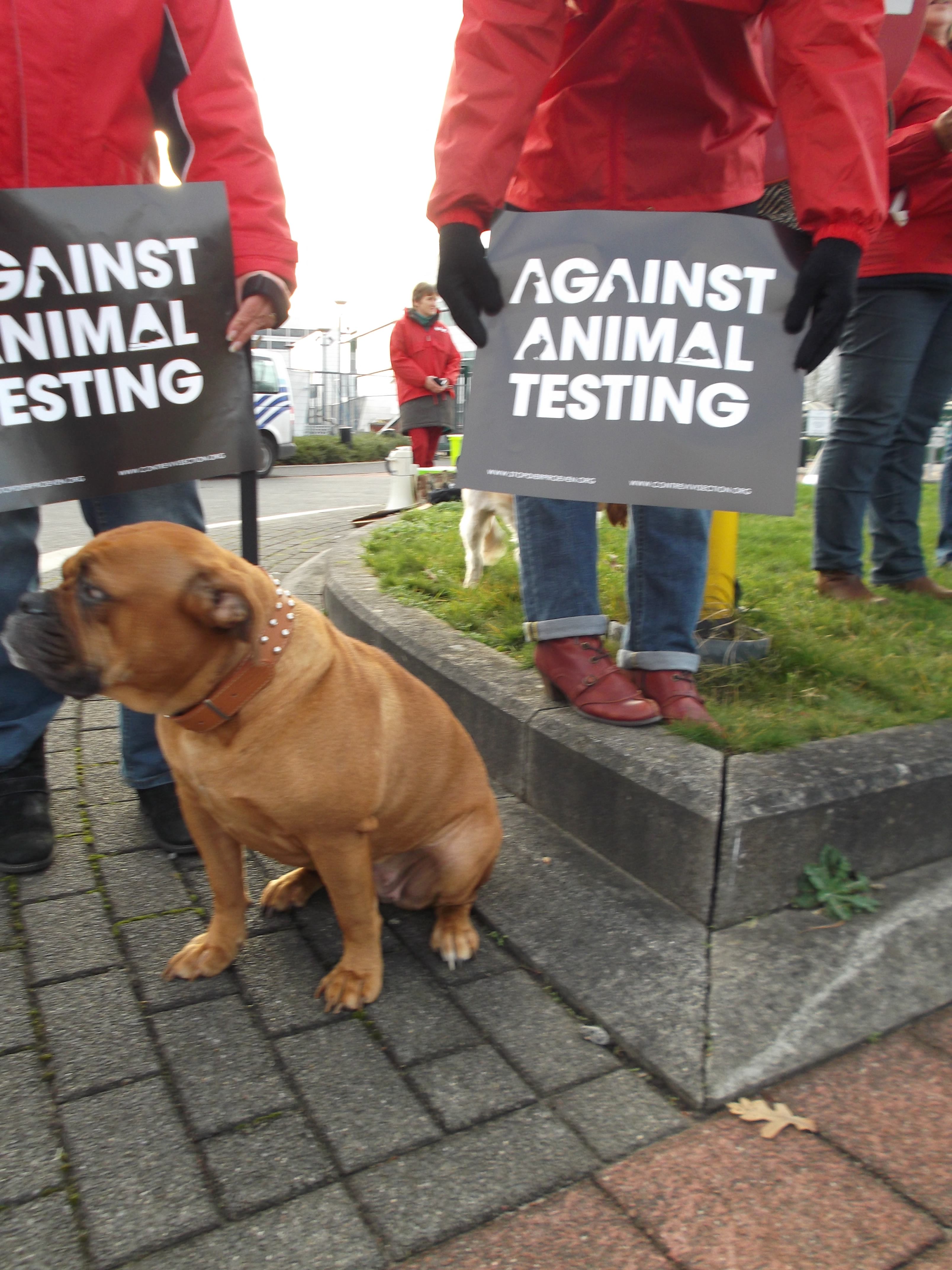 Manifestation organisée par la Coalition Anti Vivisection, à laquelle S.E.A. a participé, ce 2 décembre 2015, devant l’entreprise Janssen Pharma à Beerse.