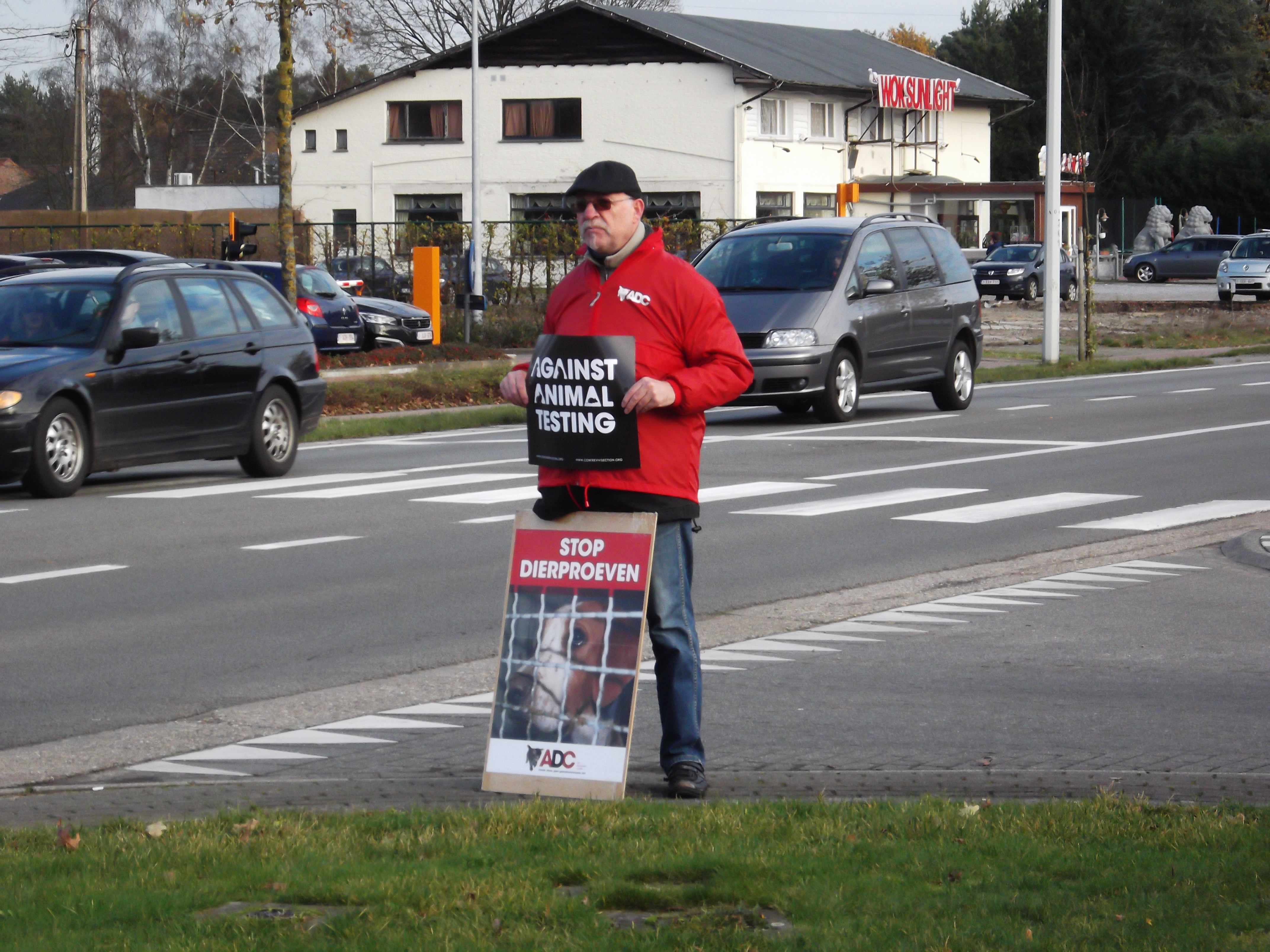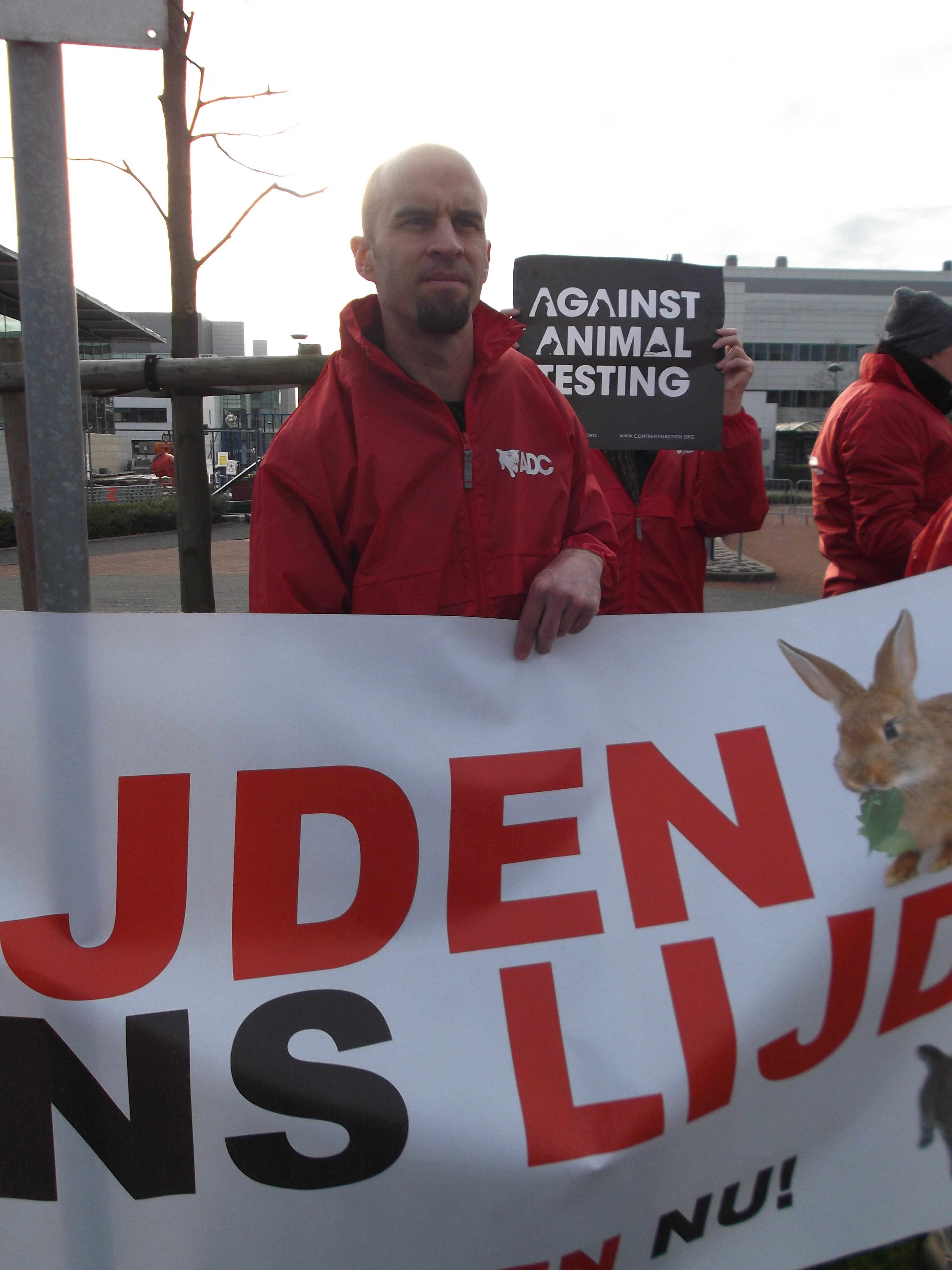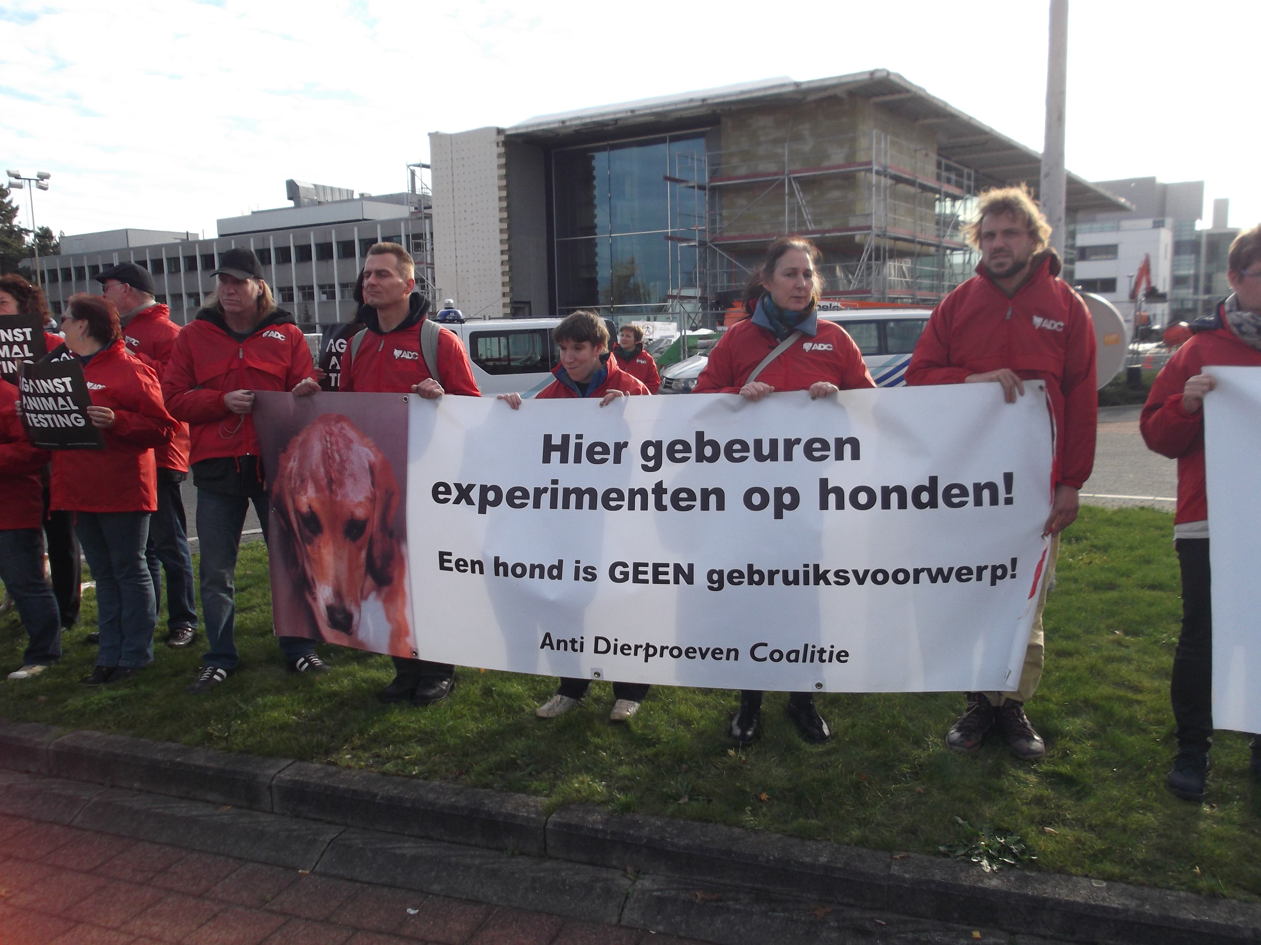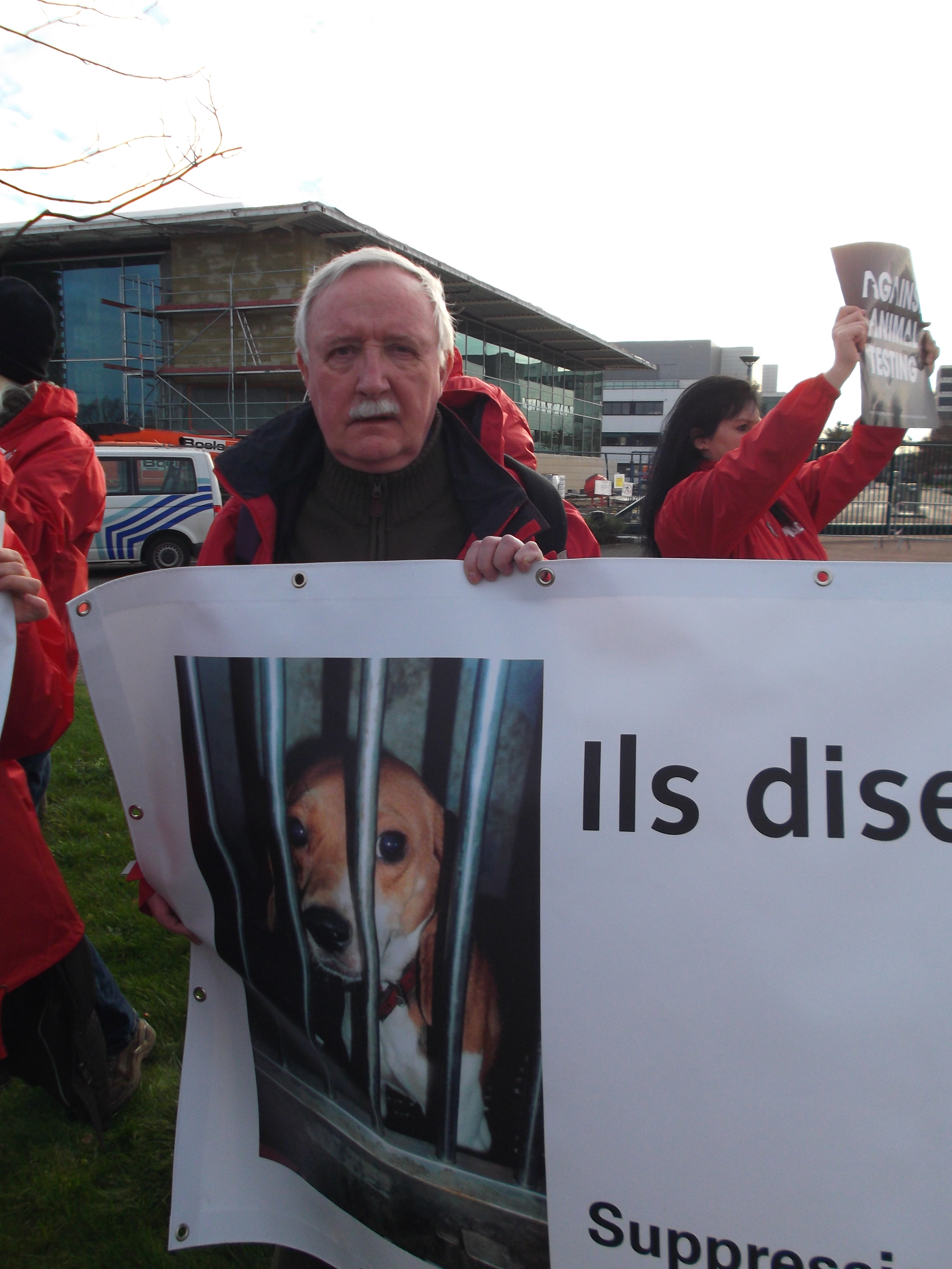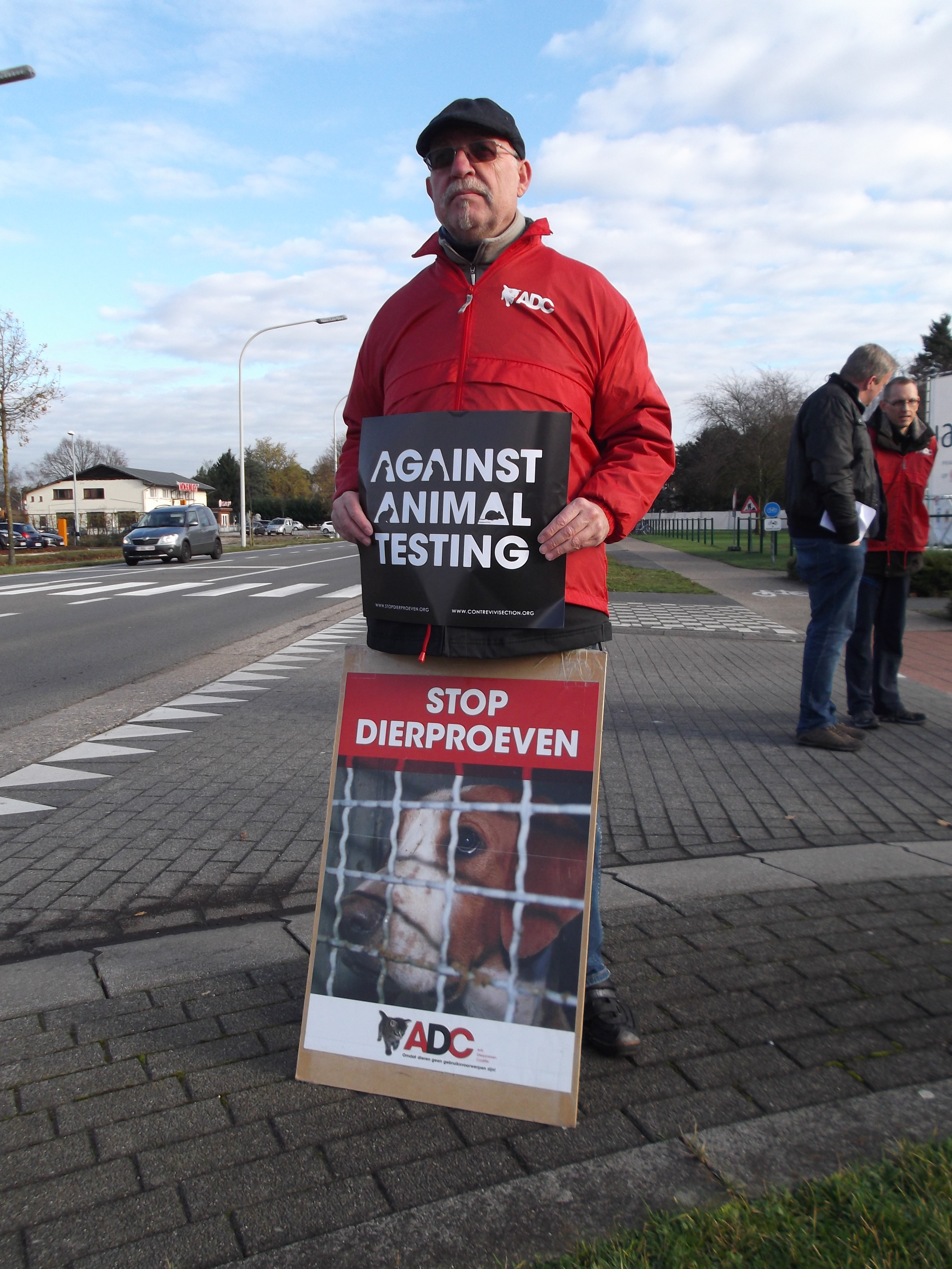 Manifestation organisée par la Coalition Anti Vivisection, à laquelle S.E.A. a participé, ce 2 décembre 2015, devant l’entreprise Janssen Pharma à Beerse.