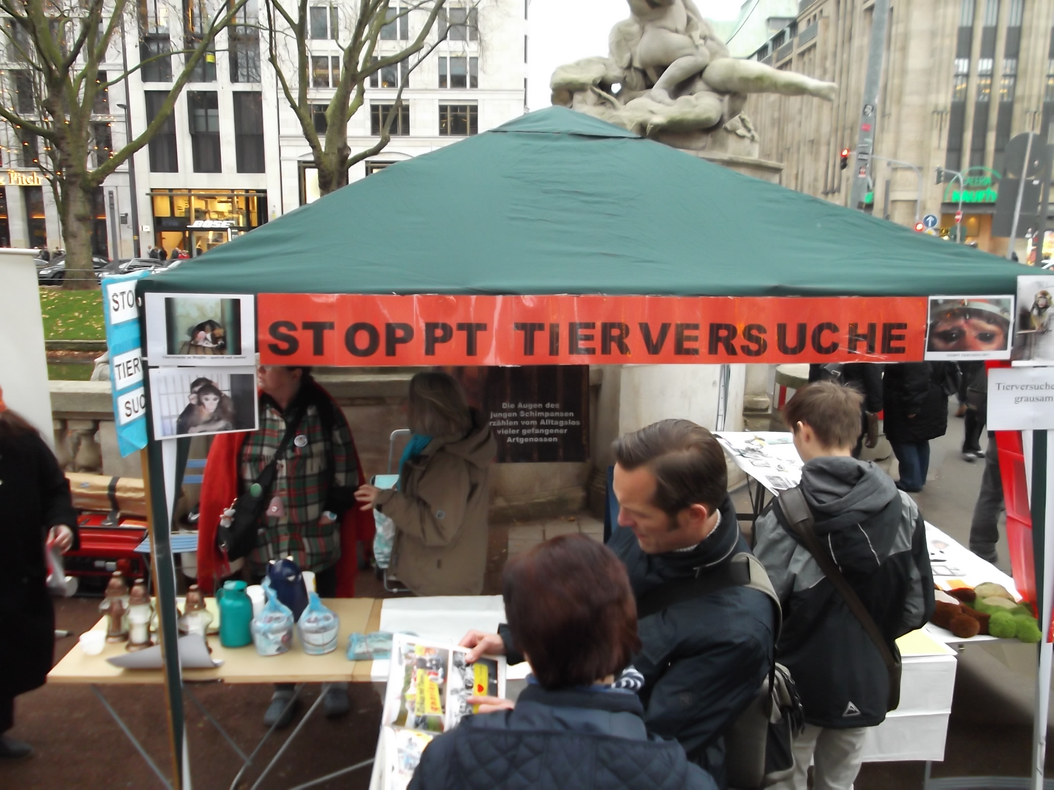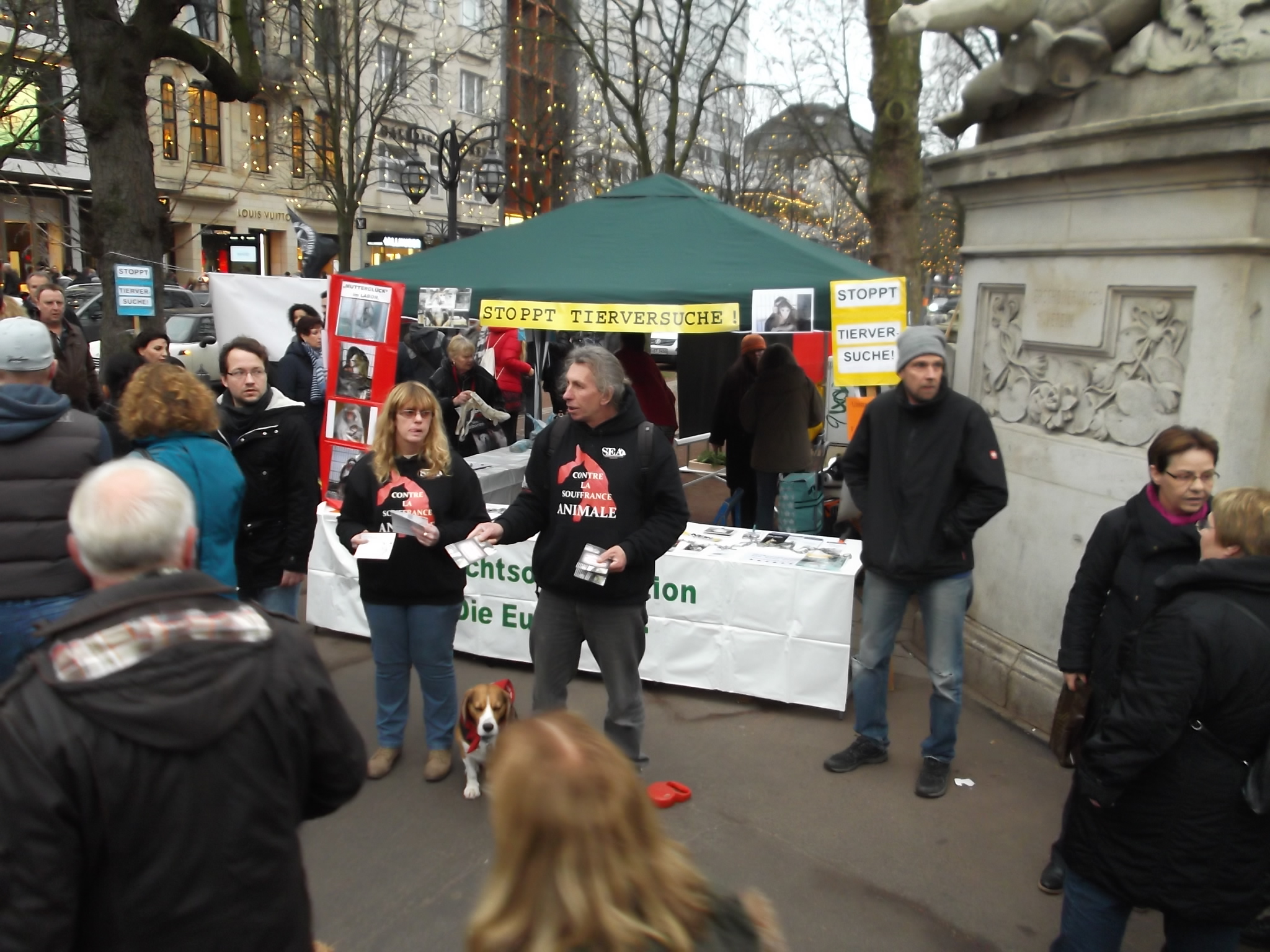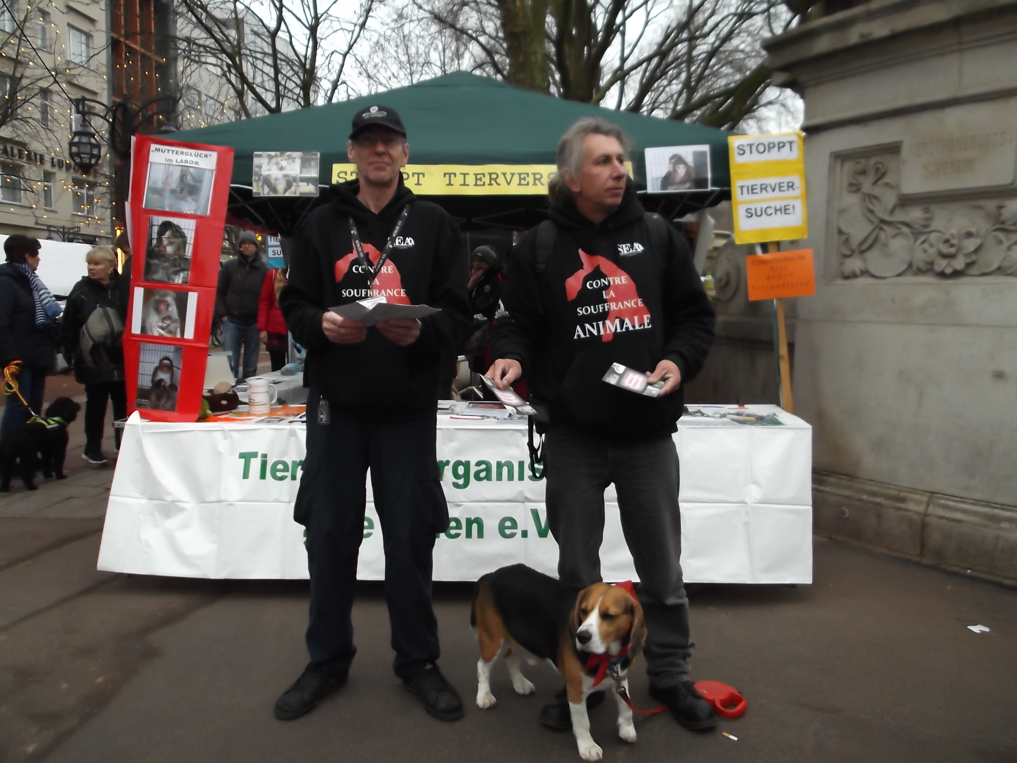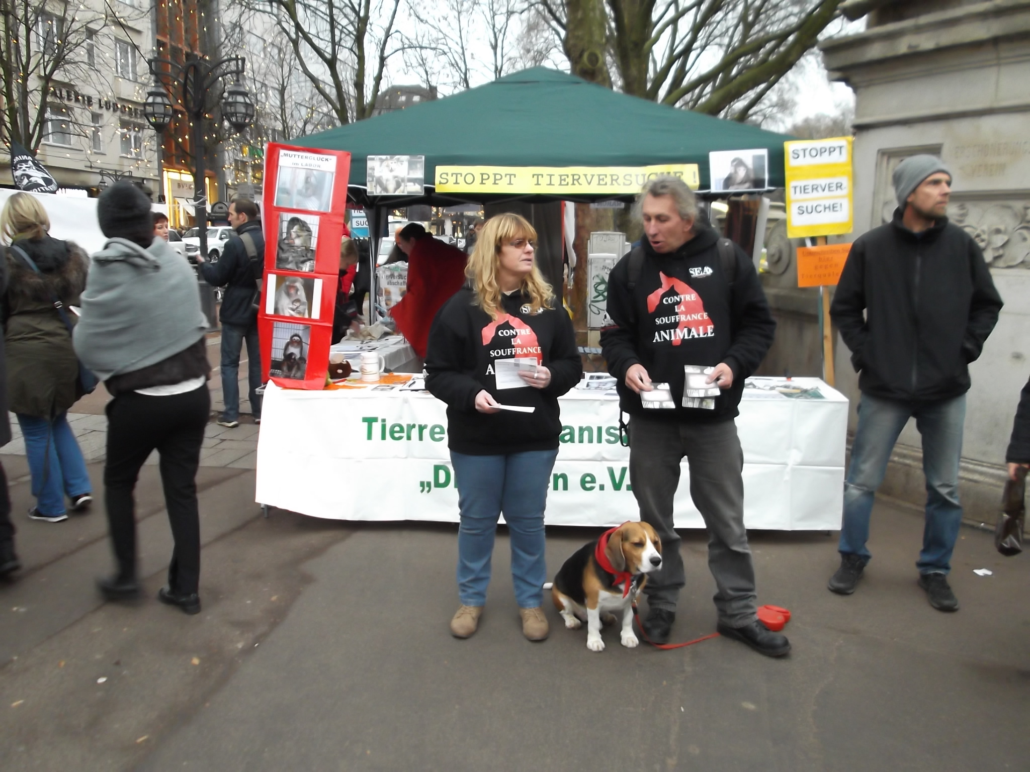 Le 10 décembre 2016, S.E.A. était présente à Düsseldorf. Un stand informant le public de l’horreur et de l’inutilité de l’expérimentation sur les animaux était tenu par (Die Eulen e.V.) nos amis anti-vivisectionnistes allemands.