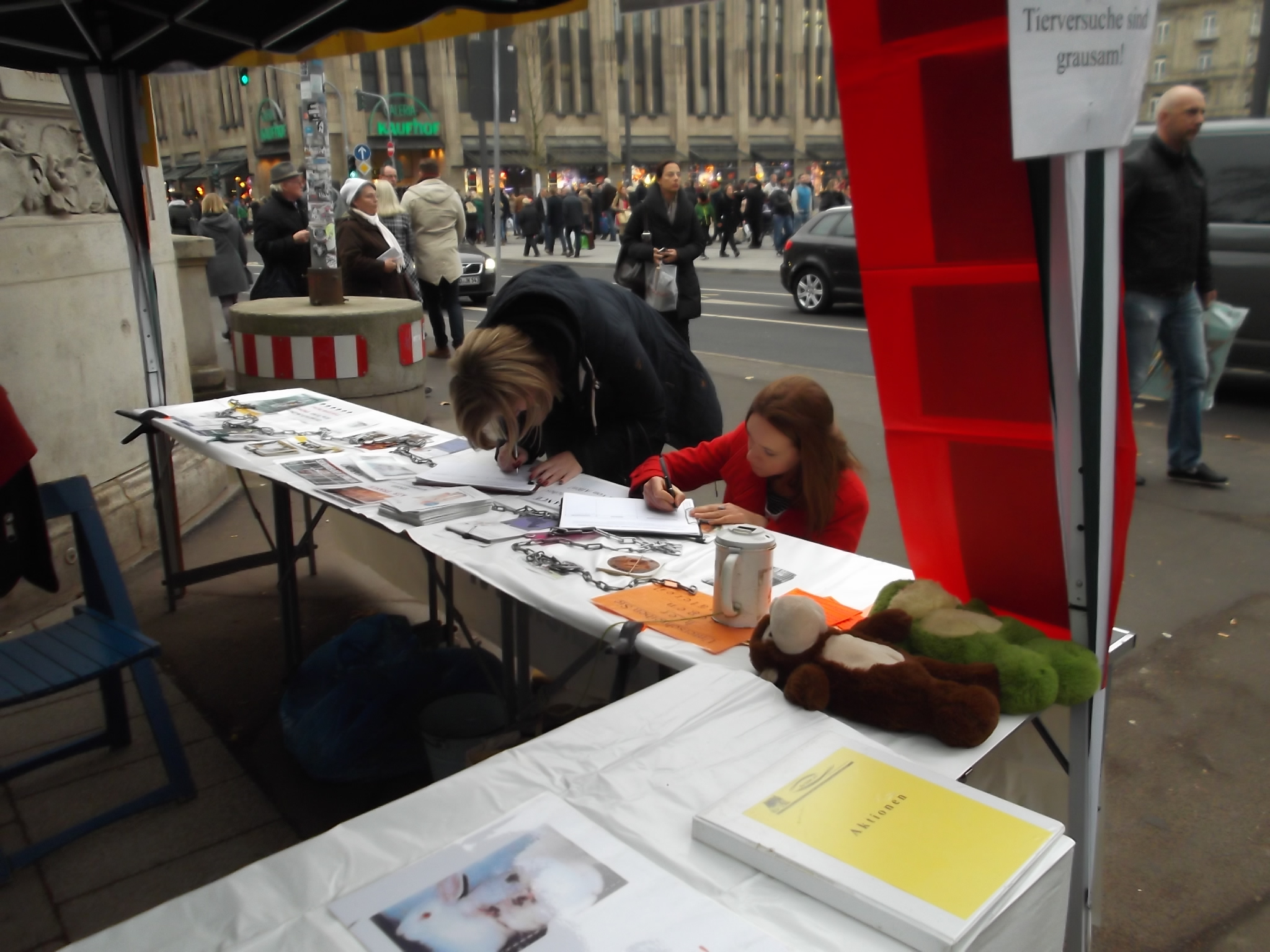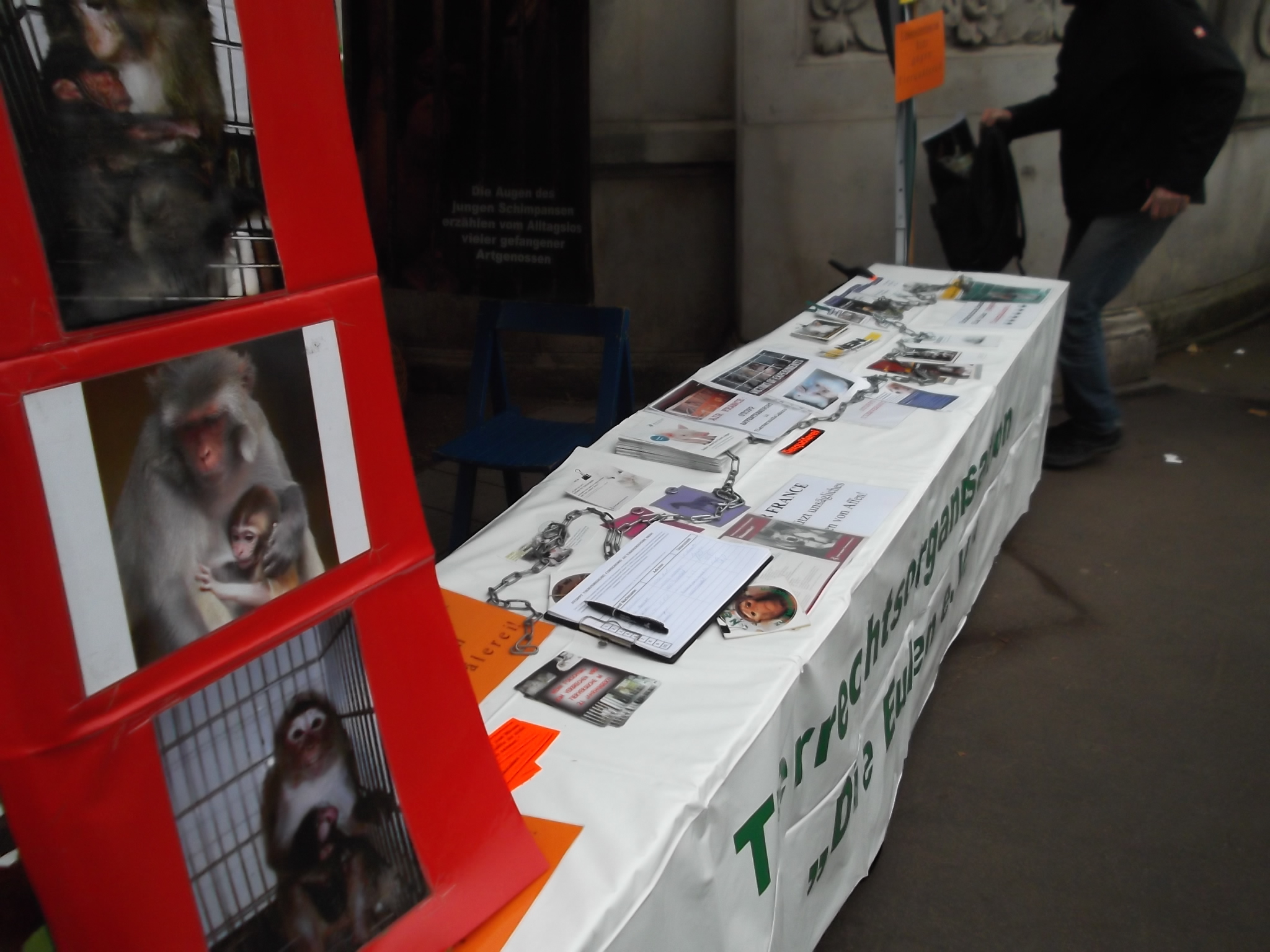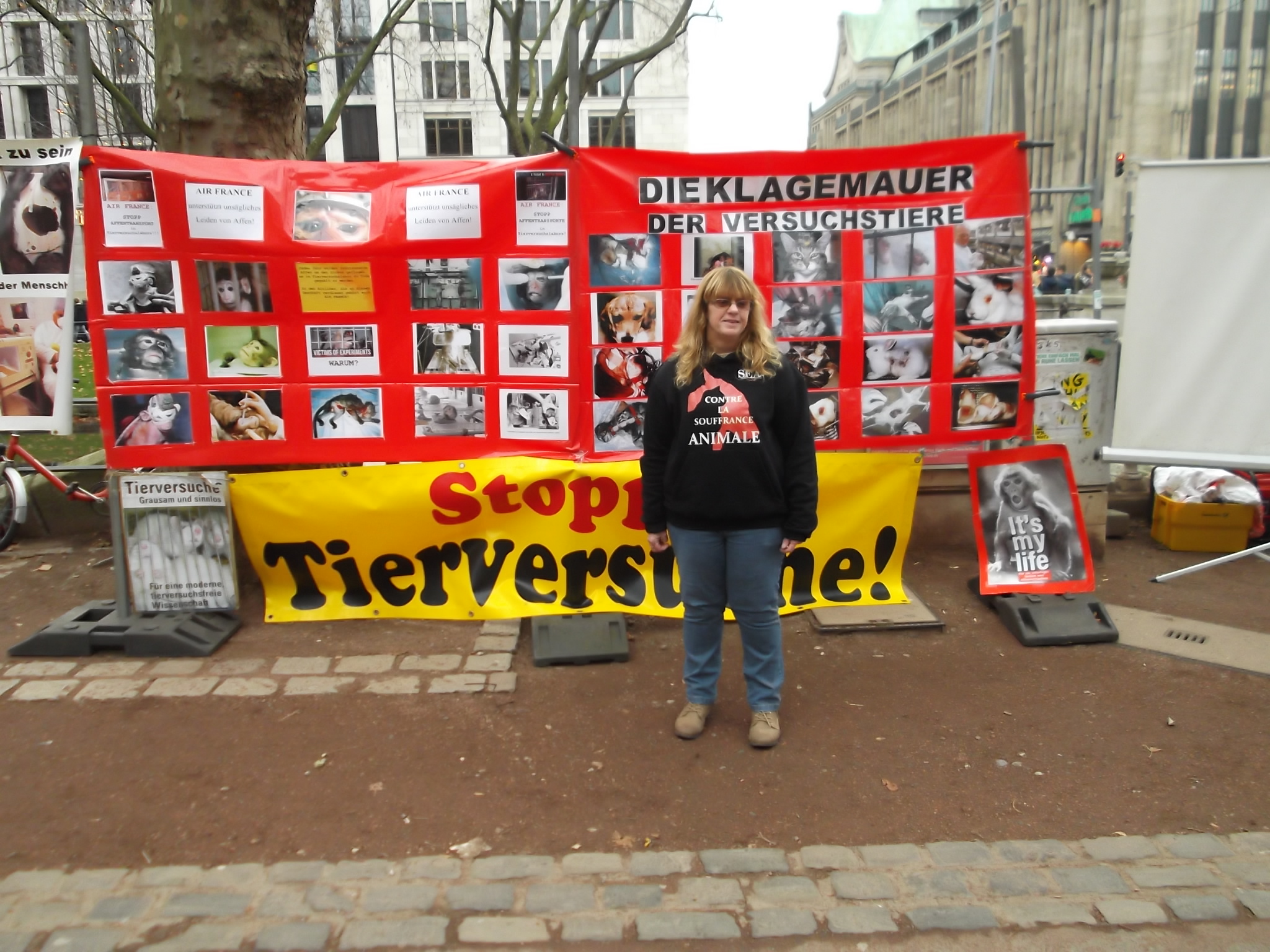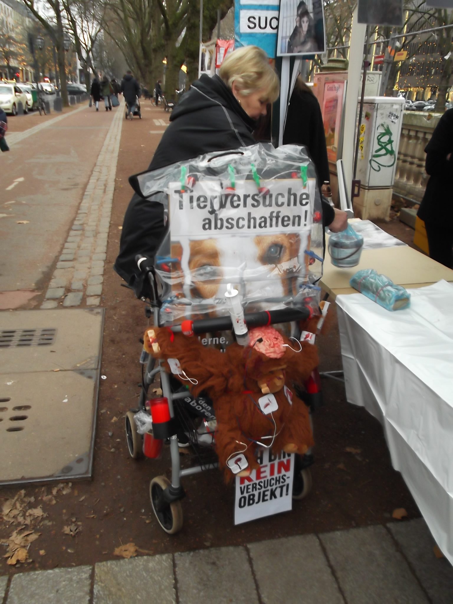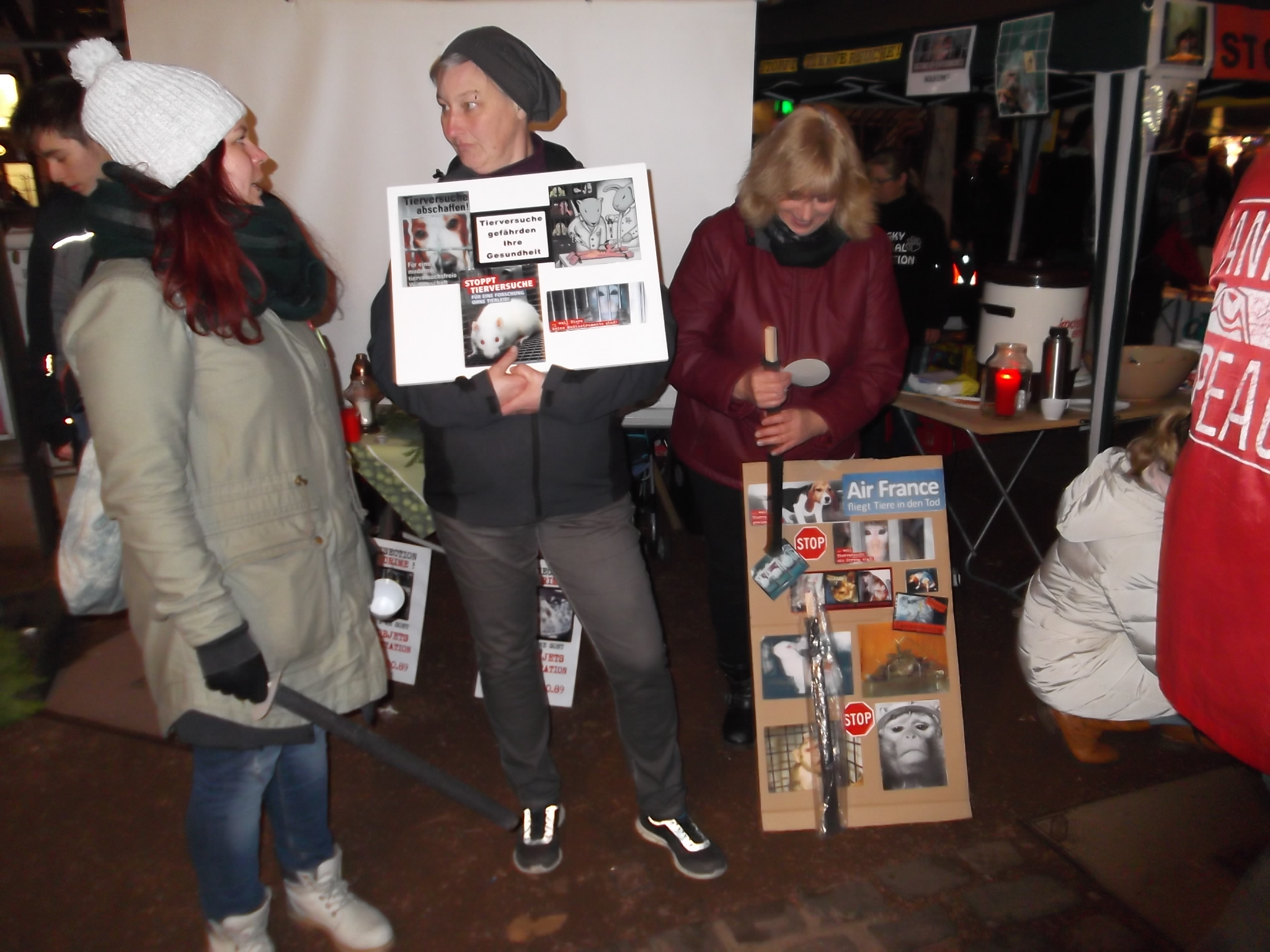 Le 10 décembre 2016, S.E.A. était présente à Düsseldorf. Un stand informant le public de l’horreur et de l’inutilité de l’expérimentation sur les animaux était tenu par (Die Eulen e.V.) nos amis anti-vivisectionnistes allemands.