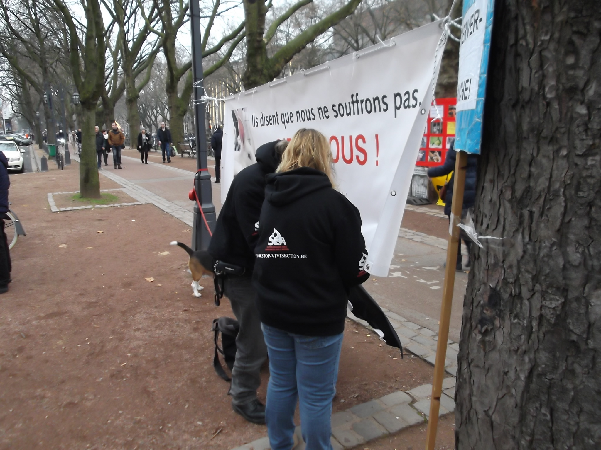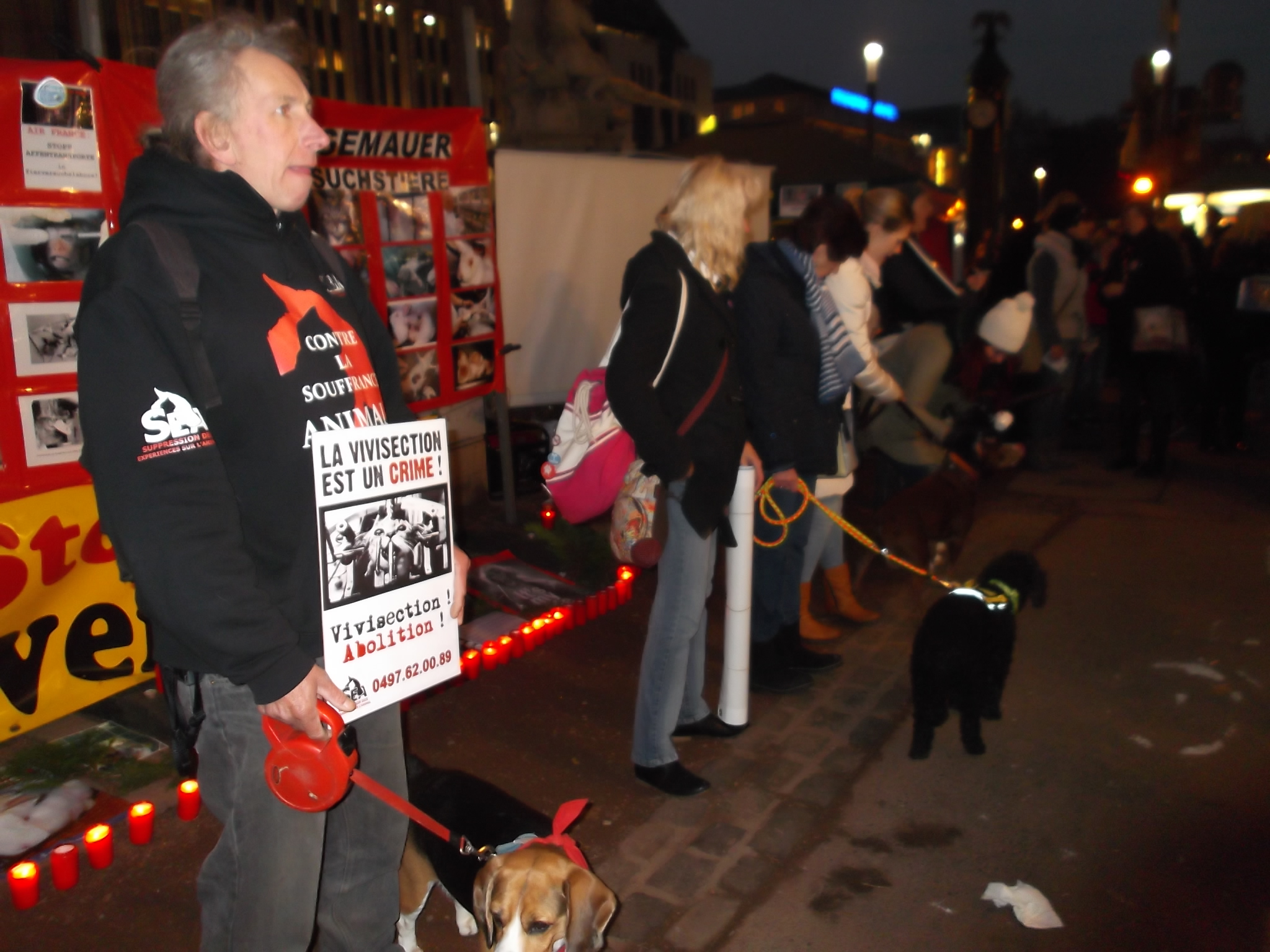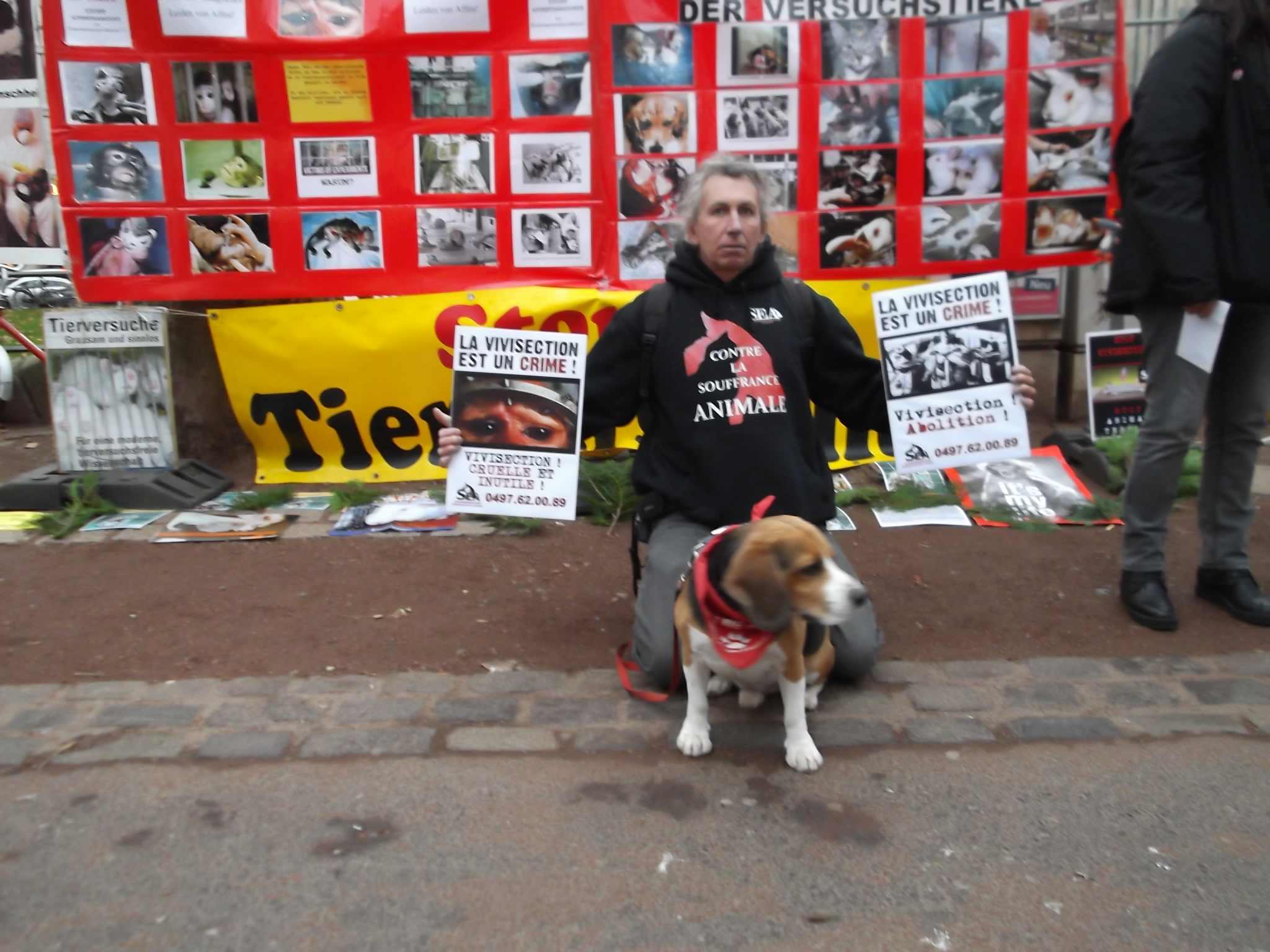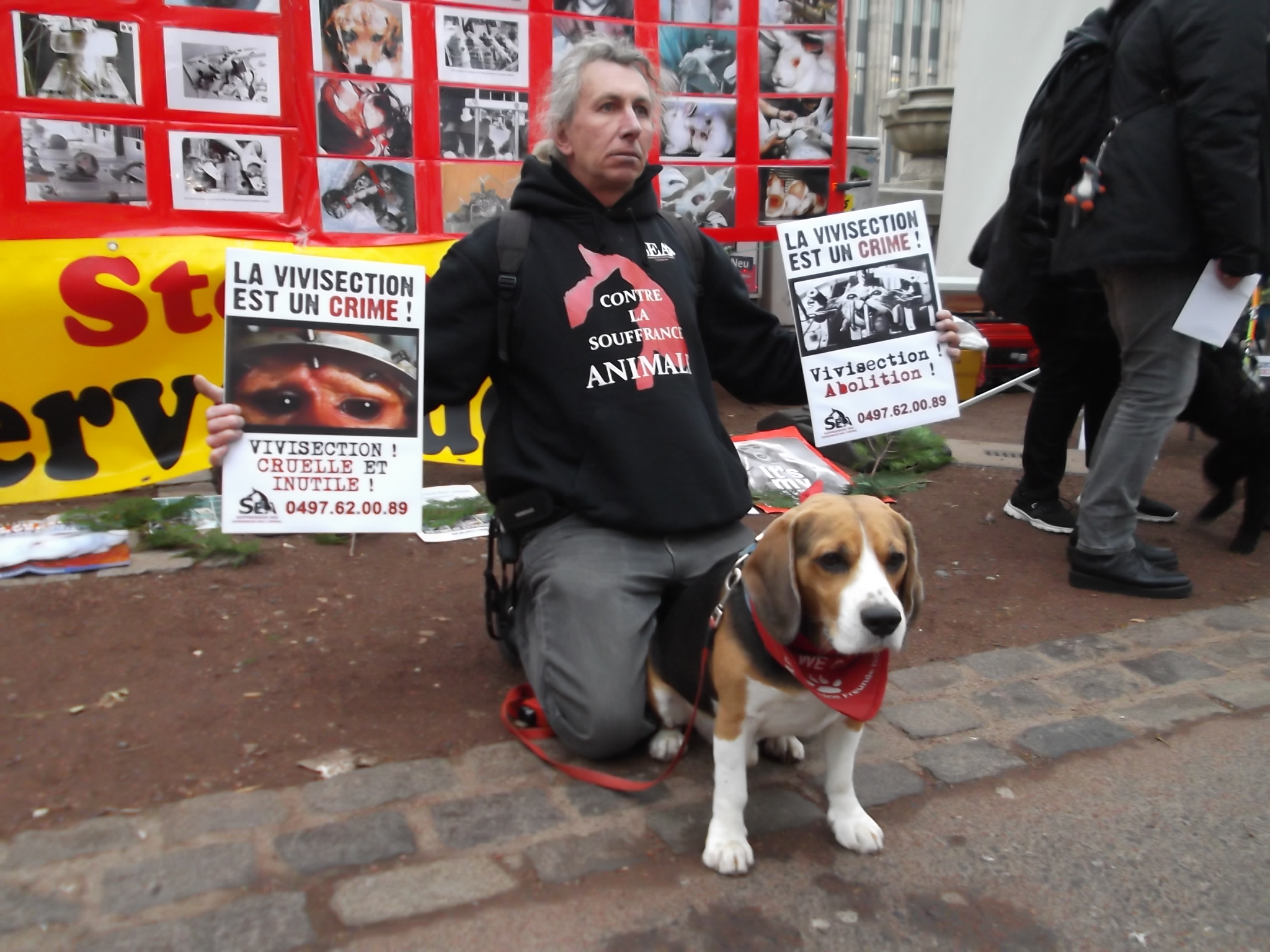 S.E.A. Suppression des Expériences sur L'Animal. avec Dany Dumbruch et vice président de Suppression des Expériences sur l'Animal asbl Yves DALCQ.