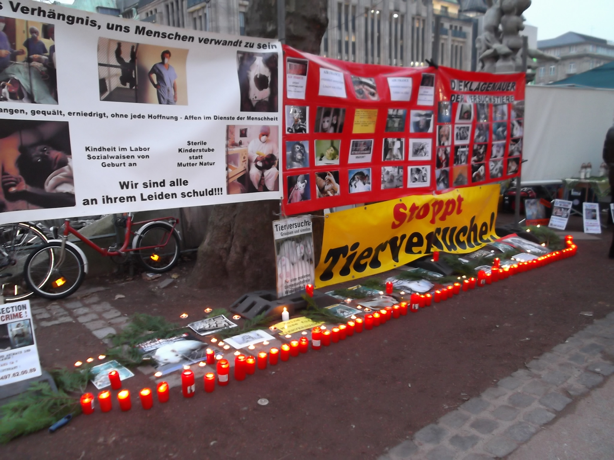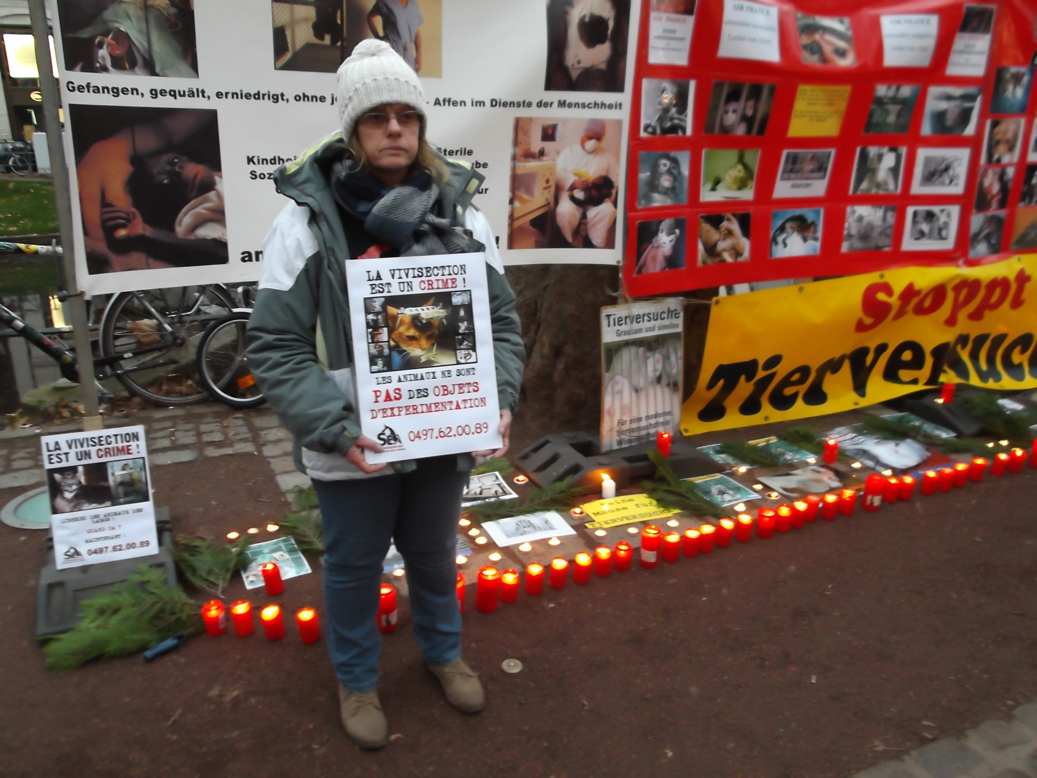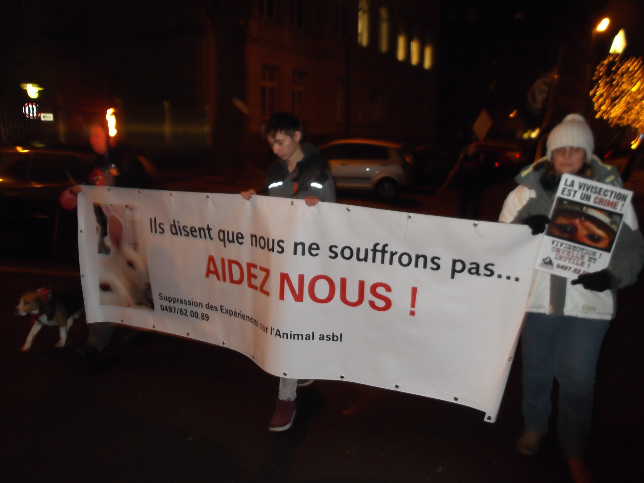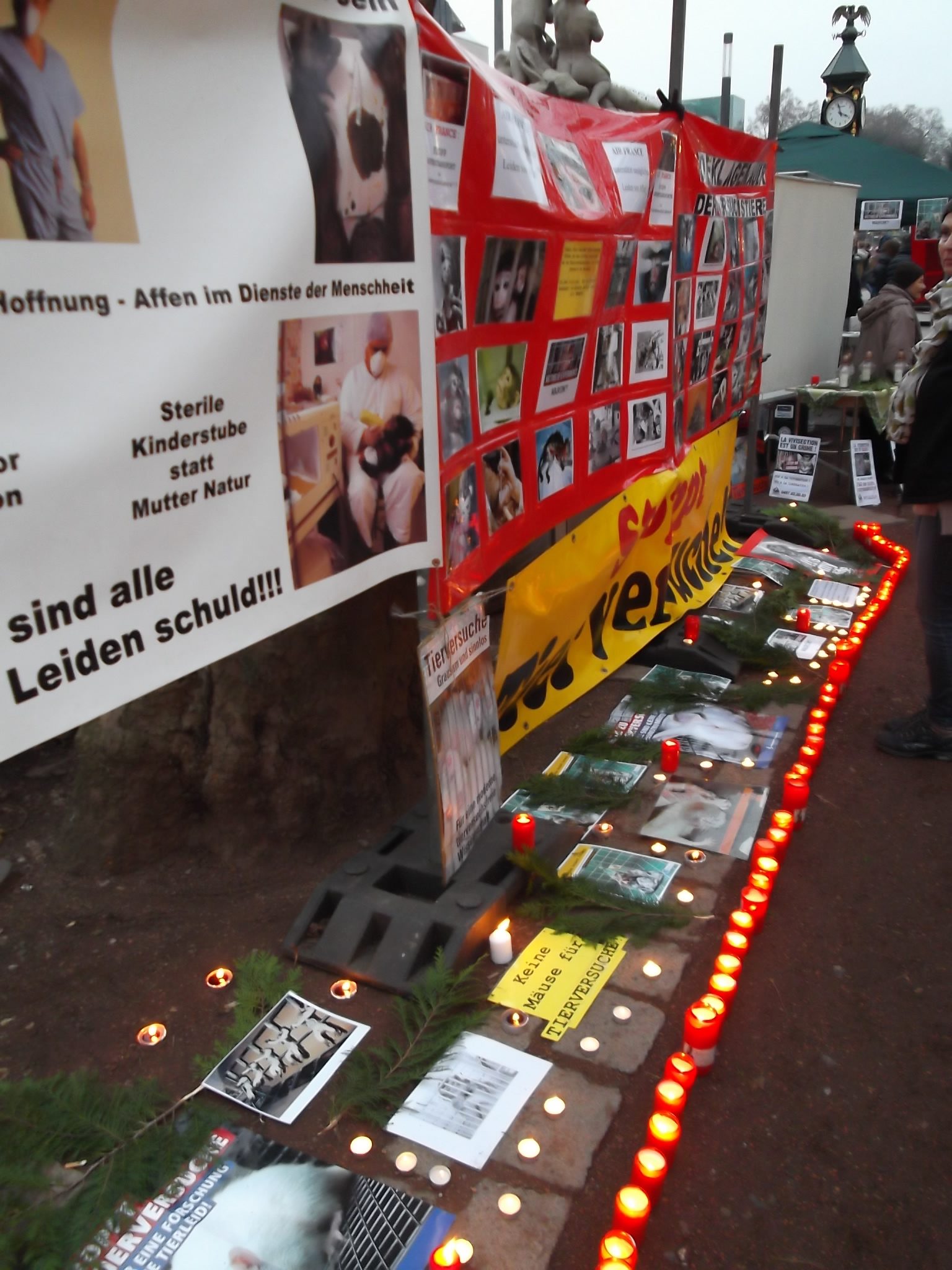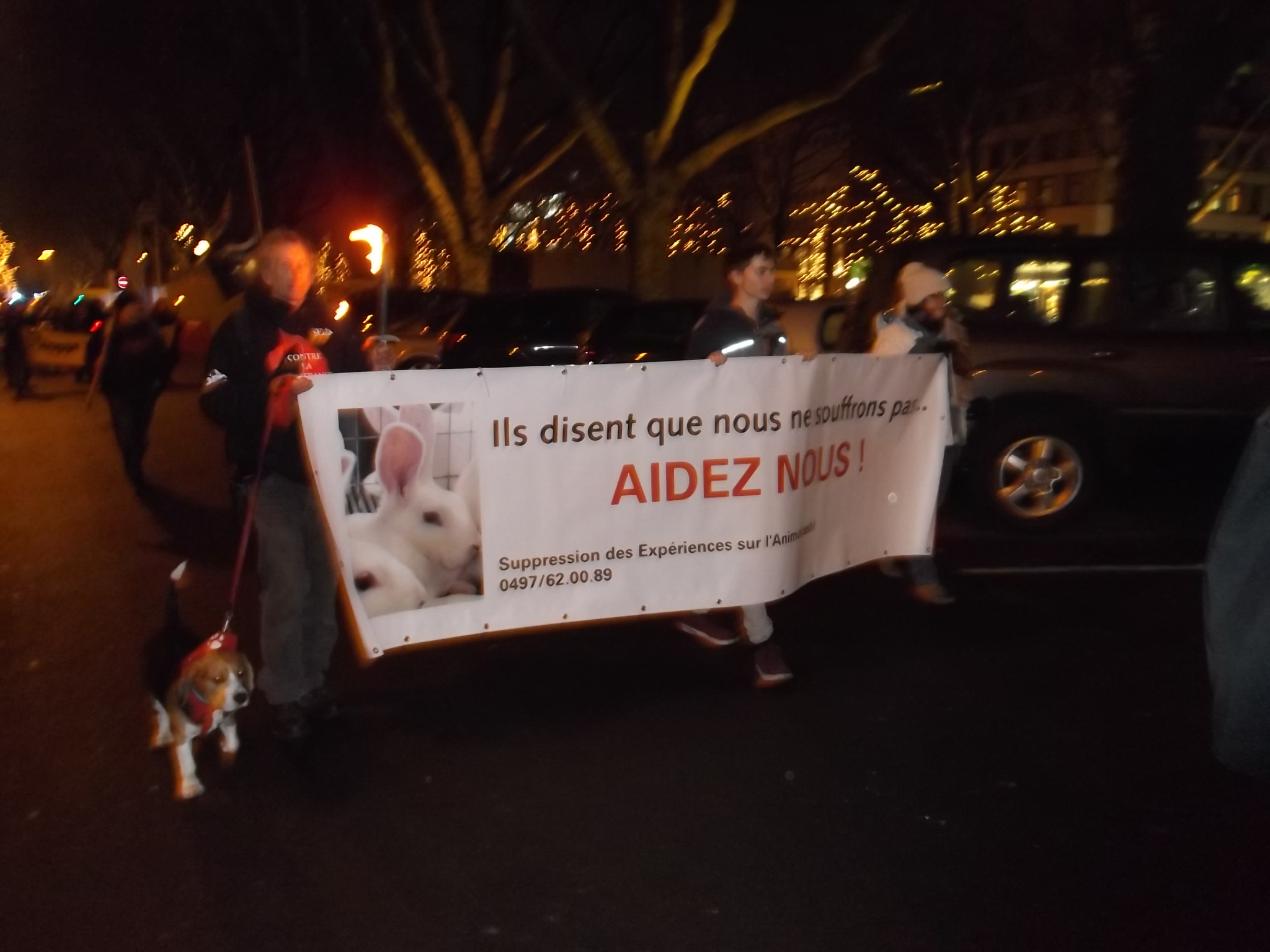 Une marche aux flambeaux et aux bougies en hommage aux millions d’animaux sacrifiés chaque année dans l’UE a ensuite parcouru les rues de Düsseldorf. Des calicots et pancartes étaient portés par les amis des animaux venus de toute l’Europe pour dire non à la vivisection.
