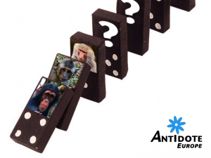« L’effet domino » a débuté le 18 novembre 2015, lorsque Francis Collins, directeur du National Institutes of Health aux Etats-Unis, a déclaré que son organisation «ne financera plus la recherche biomédicale sur les chimpanzés» (2). Cette décision découlait à la fois de la pression de l’opinion publique et d’un rapport scientifique officiel. Après le chimpanzé, l’animal le plus proche de l’homme est le singe. Cependant, on constate déjà que l’opinion publique n’accepte pas plus la recherche sur les singes comme nous le montre l’exemple de l’Université de Radboud aux Pays-Bas, qui met fin à toute recherche sur les primates en 2017 (3).