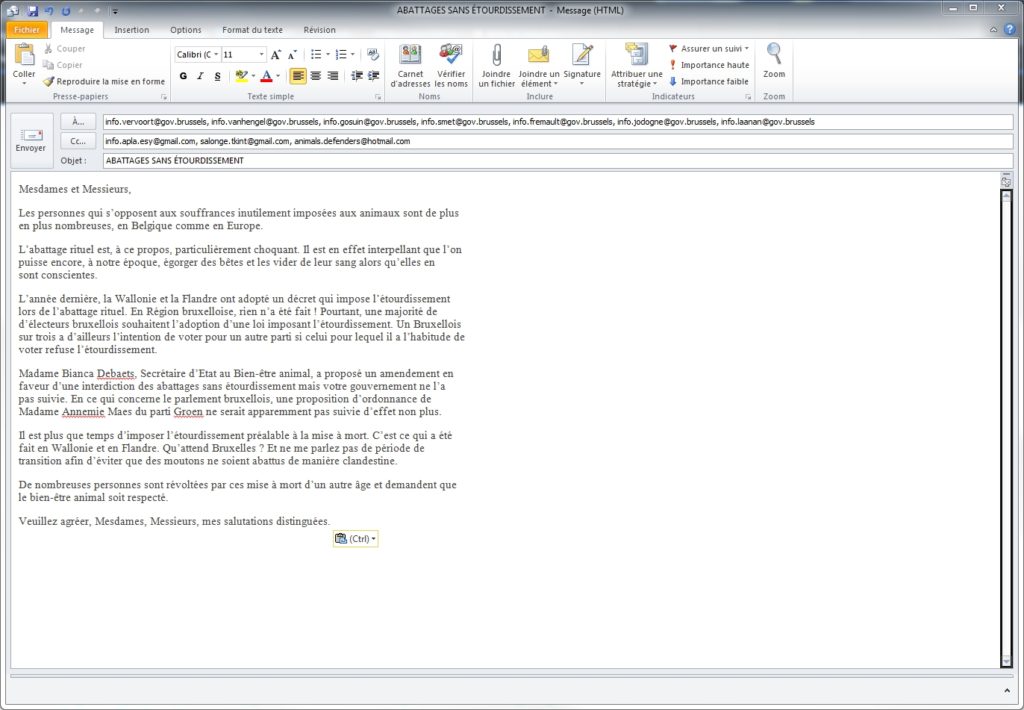 Copier (copie à) et collez les dans (cc) : solange.tkint@gmail.com, info.apla.esy@gmail.com, animals.defenders@hotmail.com