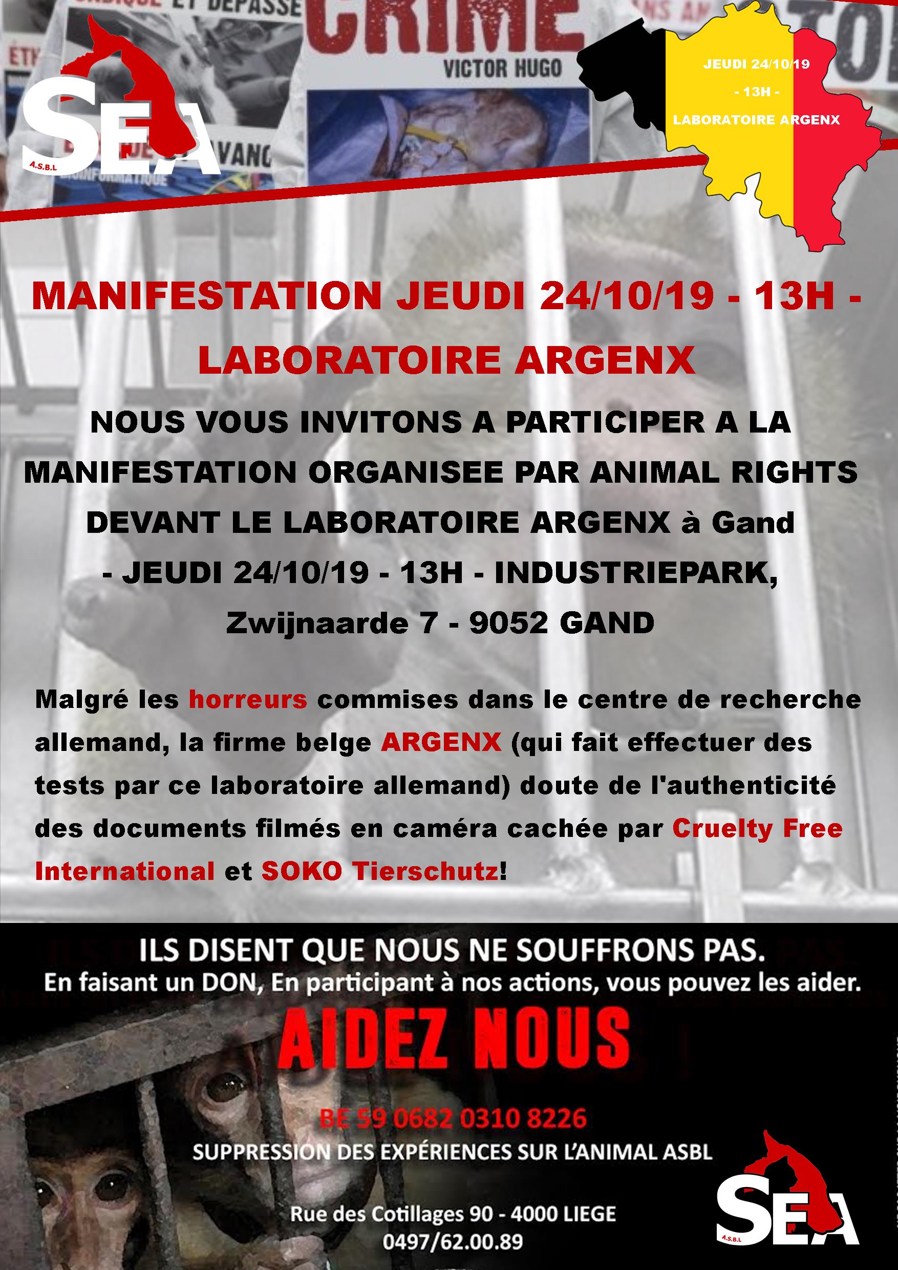 MANIFESTATION JEUDI 24/10/19 – 13H – LABORATOIRE ARGENX