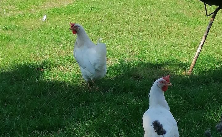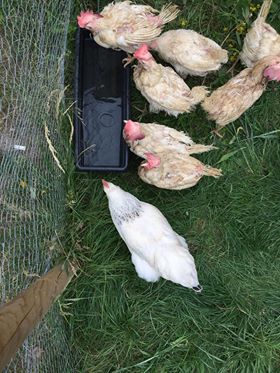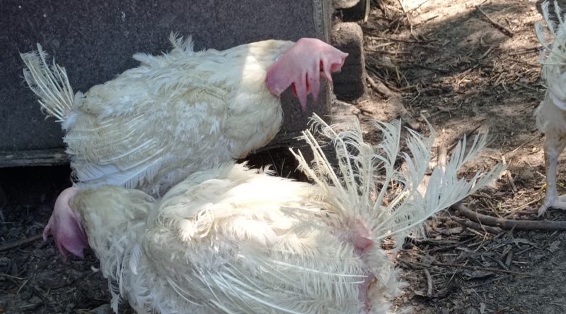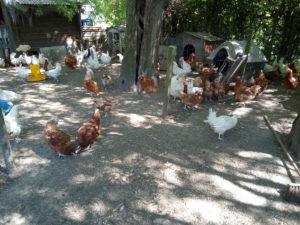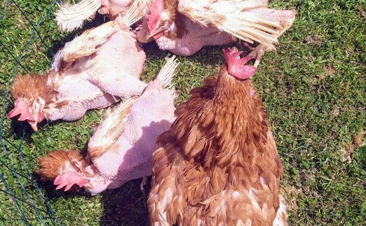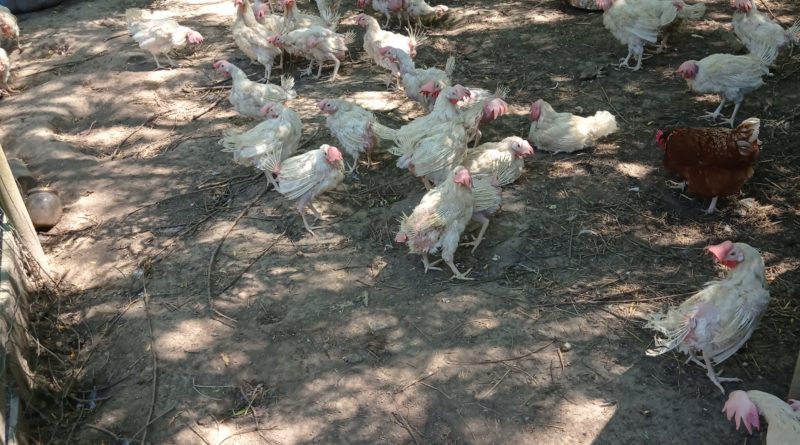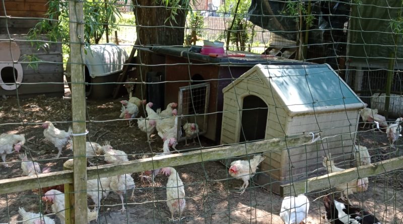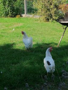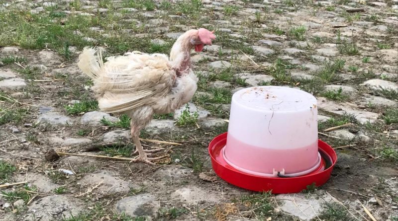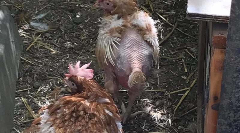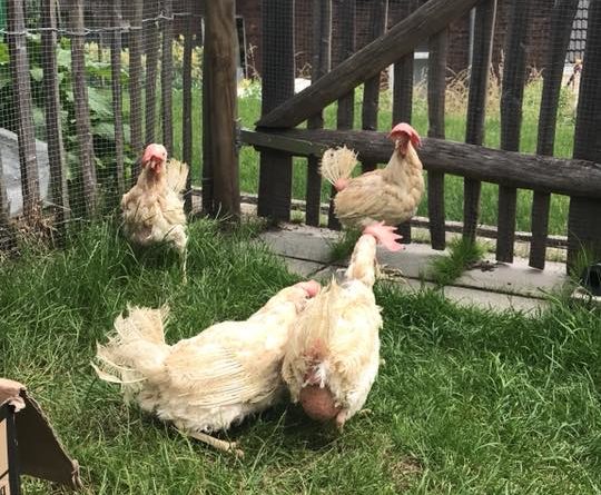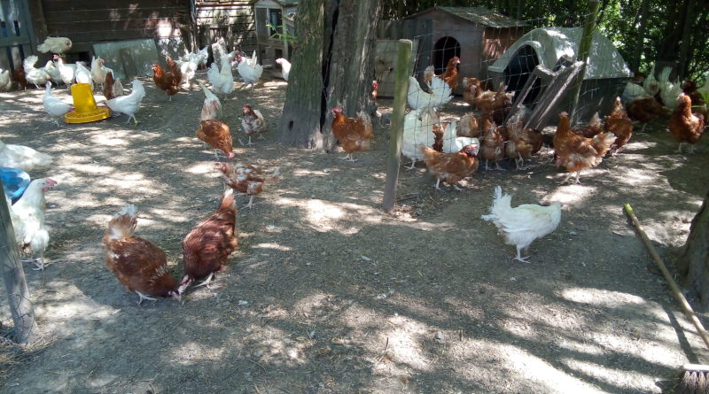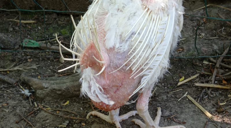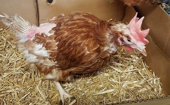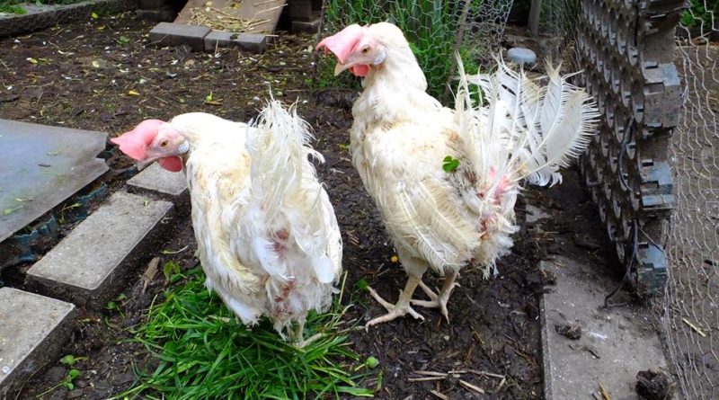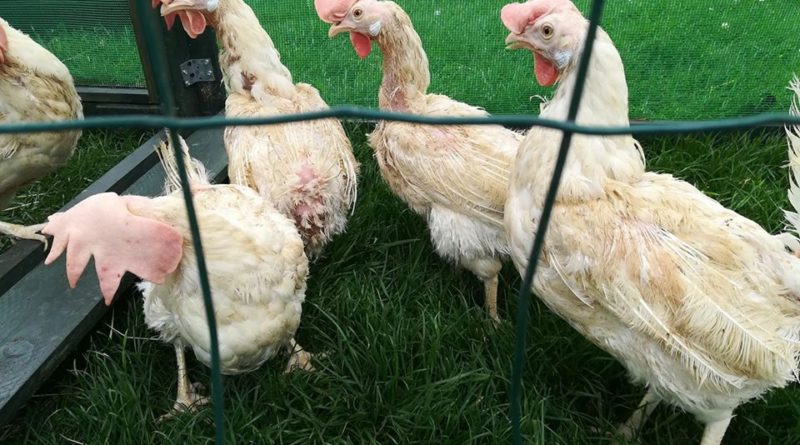 Poules sauvées des élevages industriels – A la sortie de l’élevage et chez des adoptants après quelques semaines ou quelques mois.