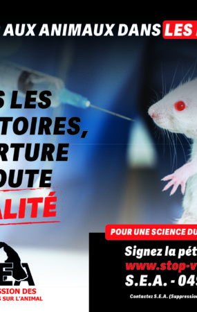 Pétition à signer : L'association Liègeoise S.E.A. - Suppression des Expériences sur l'Animal dénonce.
