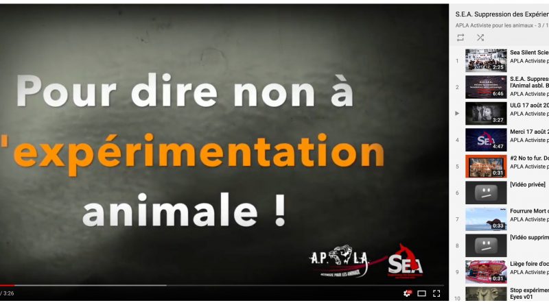 Vidéo playlist S.E.A. Suppression des Expériences sur l’animal.